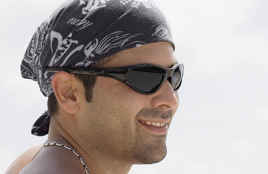 مردان هم میتوانند از باندانا بهعنوان هدبند استفاده کنند. در این روش هم میتوانید باندانا را چند بار تا کنید تا شبیه به یک نوار شود و دور سر ببندید یا بهشکل مثلث، آن را روی سر بیاندازید و پشت سر گره بزنید.