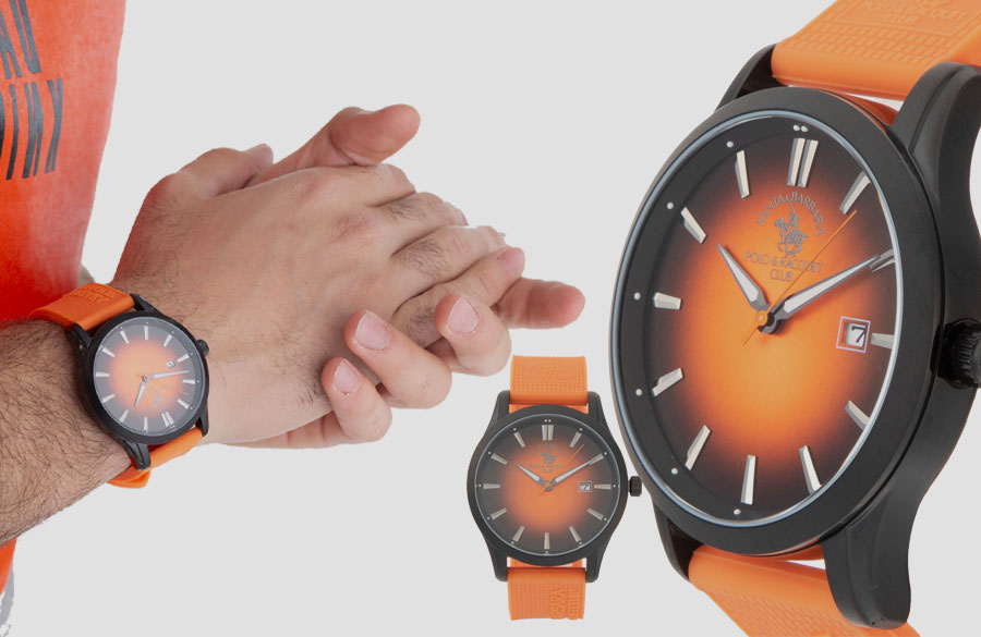 ساعت اسپرت دیگری که میخواهیم در این بخش به شما معرفی کنیم ساعت عقربهای سانتا باربارا پولو راکت کلاب مدل SB.1.10143.7 است. باشگاه معتبر سانتا باربارا پولو و راکت، قدیمیترین کلوپ چوگان در ایالات متحده است. سانتا باربارا پولو و راکت کلاب در سال ۱۹۱۱ در کالیفرنیا تأسیس شد و کالکشنهای این برند پیشروی مد با کارکرد عالی و متریال باکیفیت ساخته میشوند. مدلی که در این بخش قصد داریم به شما معرفی کنیم یکی از مدلهای جذاب این برند است که برای استایل روزمره و اسپرت بسیار مناسب است. رنگ شاد نارنجی صفحه ساعت و بند آن باعث میشود در هر ترکیب رنگی بدرخشد و هارمونی جذابی را پدید آورد.