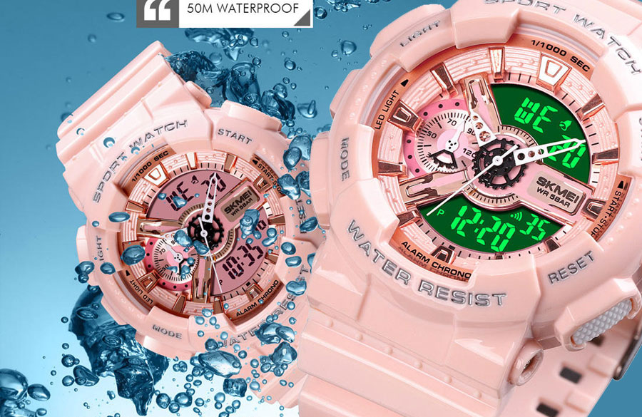 اگر یک ساعت مچی با قیمت پایین و کیفیت مناسب میخواهید، برند اسکمی یکی از آن برندهاییست که حتما باید به محصولاتش سر بزنید. ساعت اسپرت دیجیتال اسکمی مدل ۸۸-۱۶ کد ۰۲ طراحی بسیار چشمنوازی دارد؛ رنگ صورتی بدنه و صفحهاش بسیار دلنشین است و ترکیب یک ساعت آنالوگ و یک ساعت دیجیتال بر روی صفحهی گرد ساعت هم آن را جذابتر کرده و هم بر کارآمدی آن افزوده است.