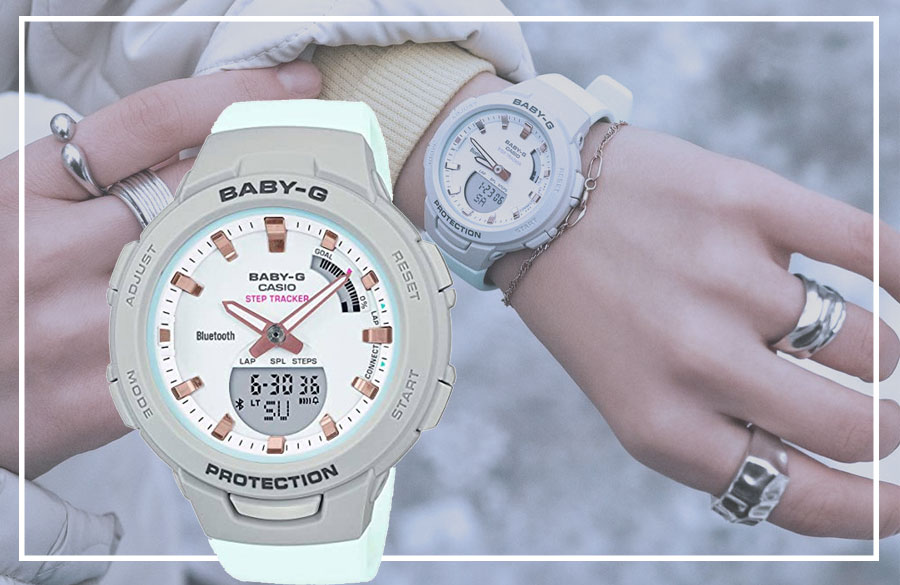 در دههی نود میلادی پس از تولید ساعتهای جی شاک برند کاسیو لاین دیگری را در تولید ساعتهای مچی آغاز کرد؛ کالکشنی به نام BABY G که تمامی مشخصات ساعتهای جی شاک را دارا بود با این تفاوت که طراحی ظریفتری داشت و مخصوص خانمها طراحی و تولید میشد. کالکشن اسپرت بیبی جی یکی از پرطرفدارترین کالکشنهای کاسیو است و بر طبق شعارهای تبلیغاتی این کمپانی مخصوص خانمهای پر جنب و جوش، جسور و فعال با استایلی شیک طراحی شده است.