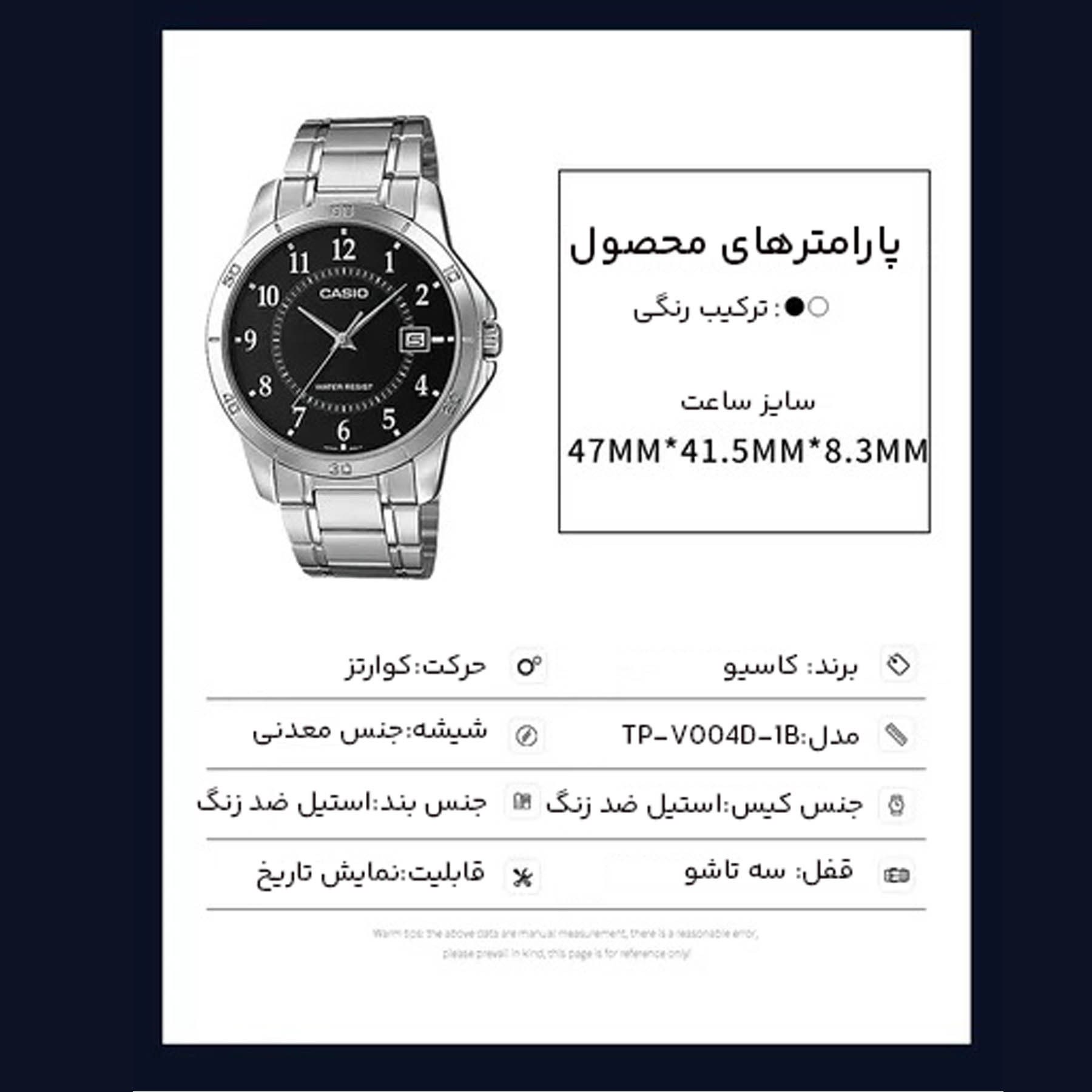 - قطر صفحه ساعت41.5 میلیمتر