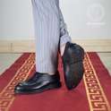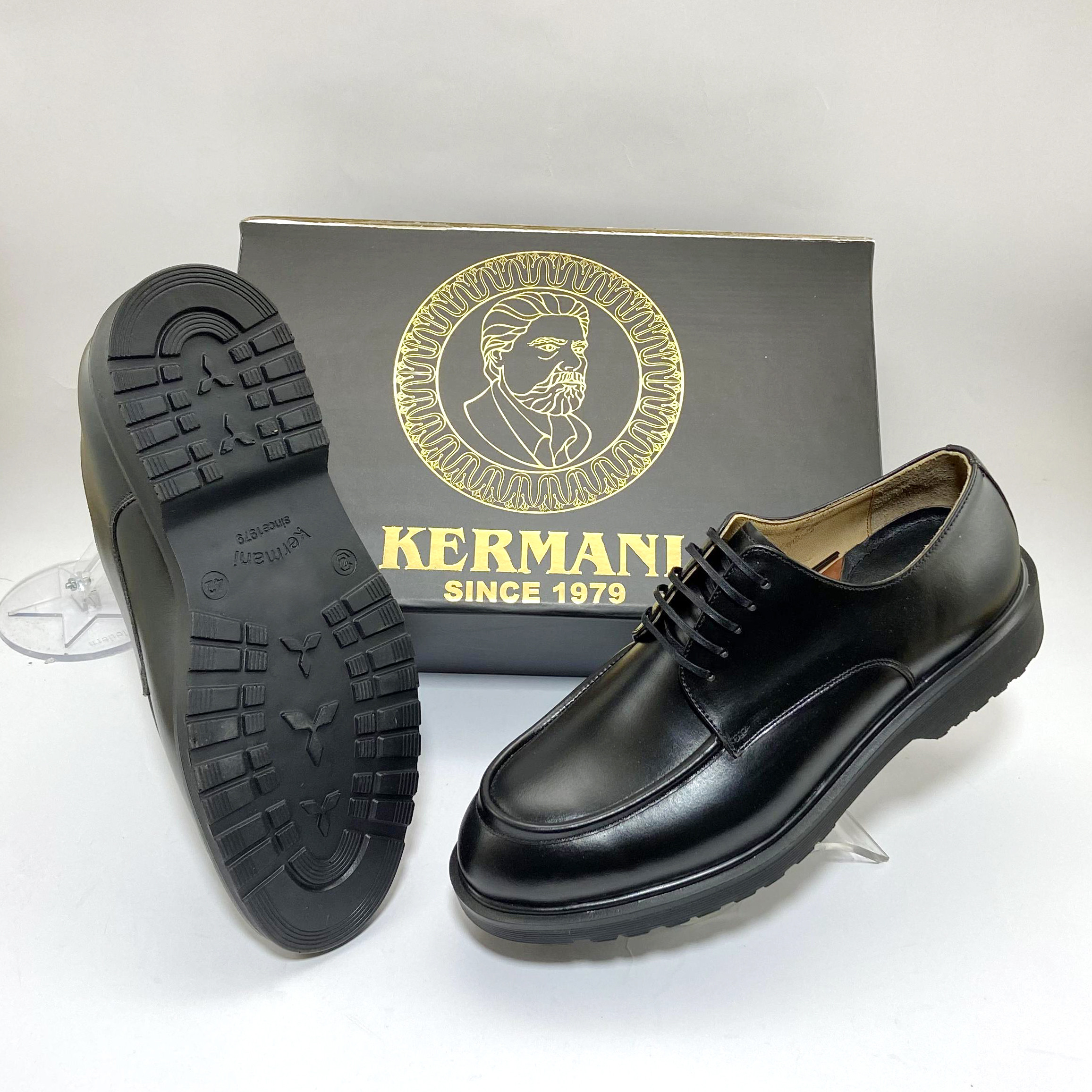 - جزئیاترویه و آستر این کفش چرم طبیعی بوده و کفی هفت لایه دست ساز این مدل نیز با چرم طبیعی گاوی بصورت انحصاری تولید شده و دارای لایه سازگار با خارپاشنه و بالشتک گردش هوا میباشد، که با کاهش فشار وارده و ایجاد حالت ارتجاعی هنگام راه رفتن از آسیب به زانو ها و ستون فقرات جلوگیری میکند.