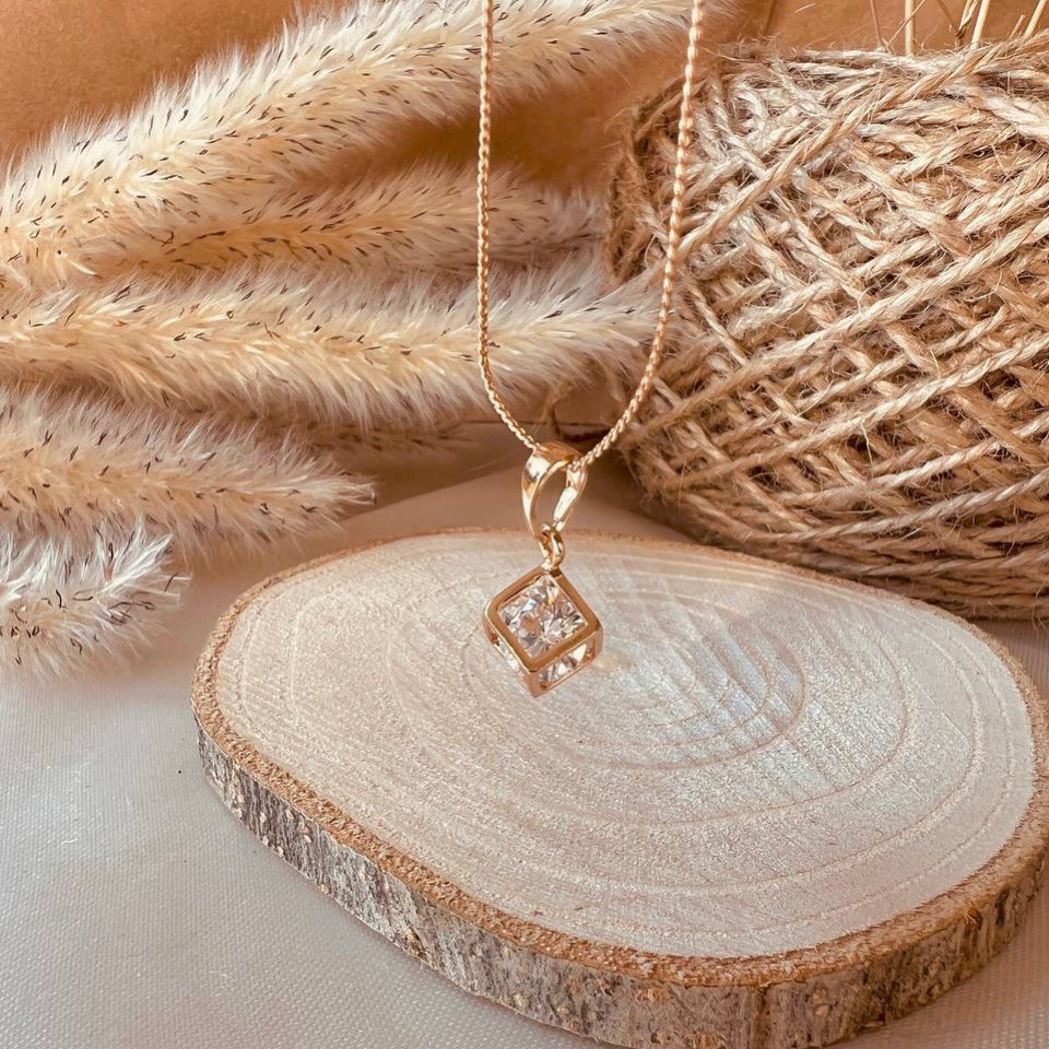 گردنبند زنانه ژوپینگ مدل مکعب نگینی
