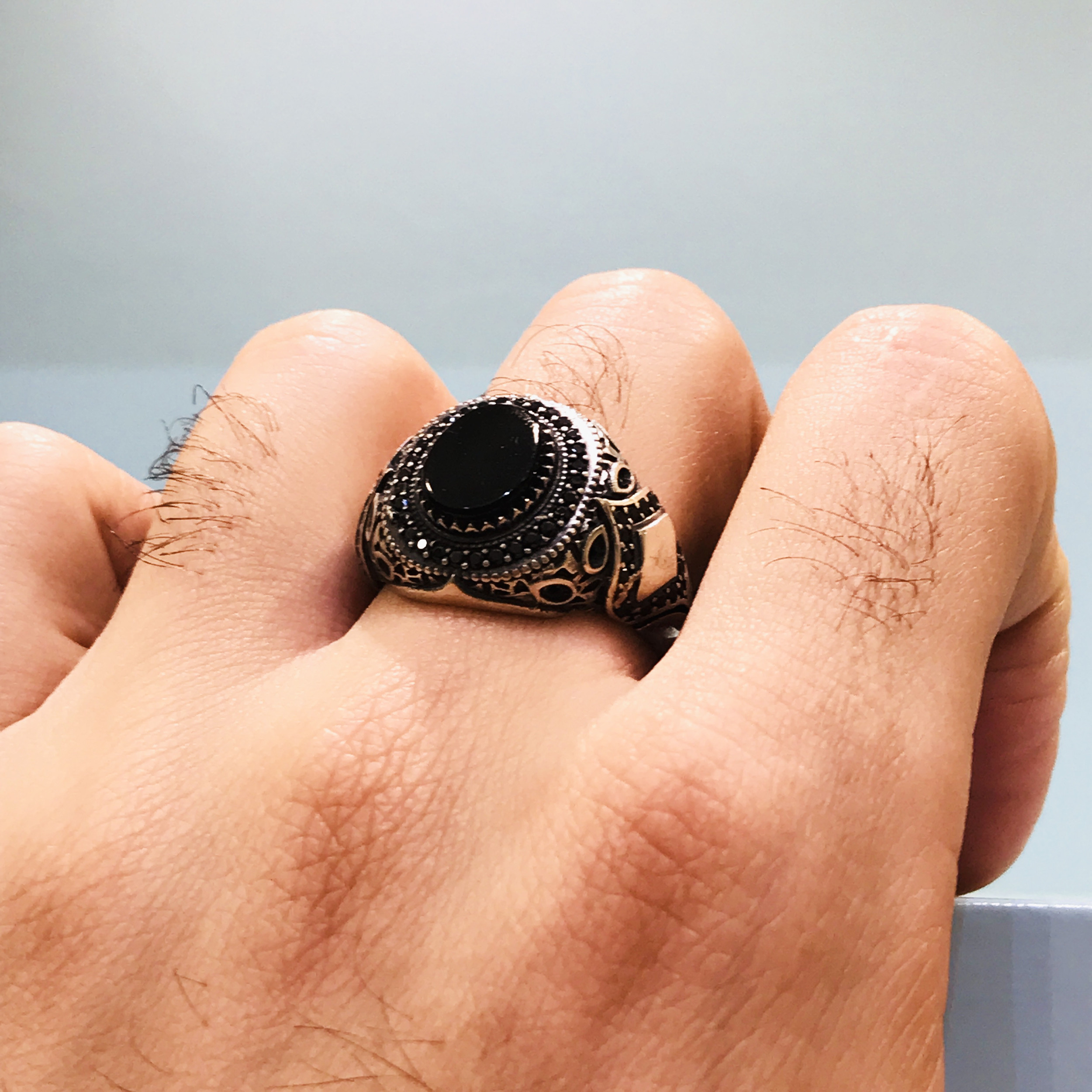 انگشتر نقره مردانه مدل اسپرت ترک عقیق