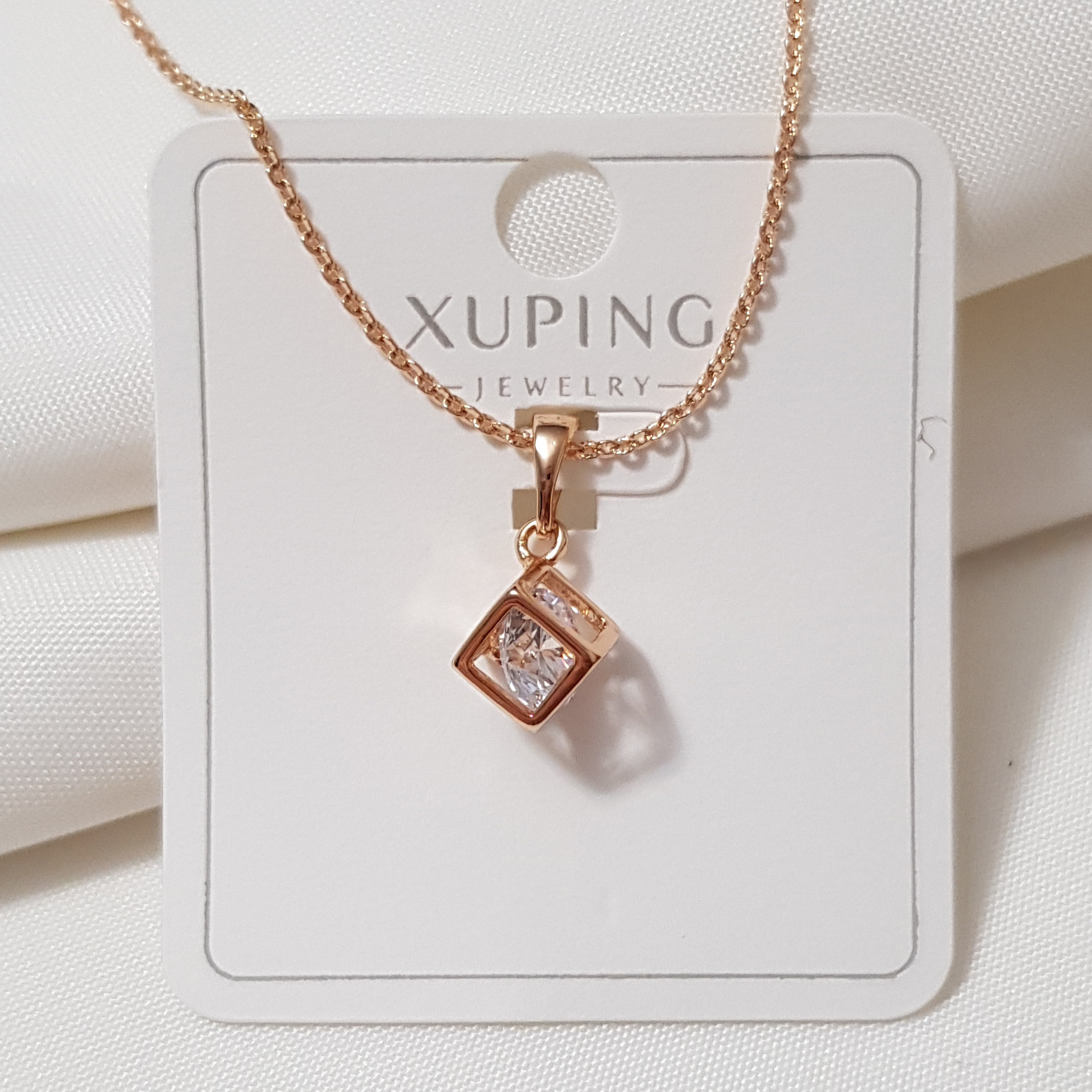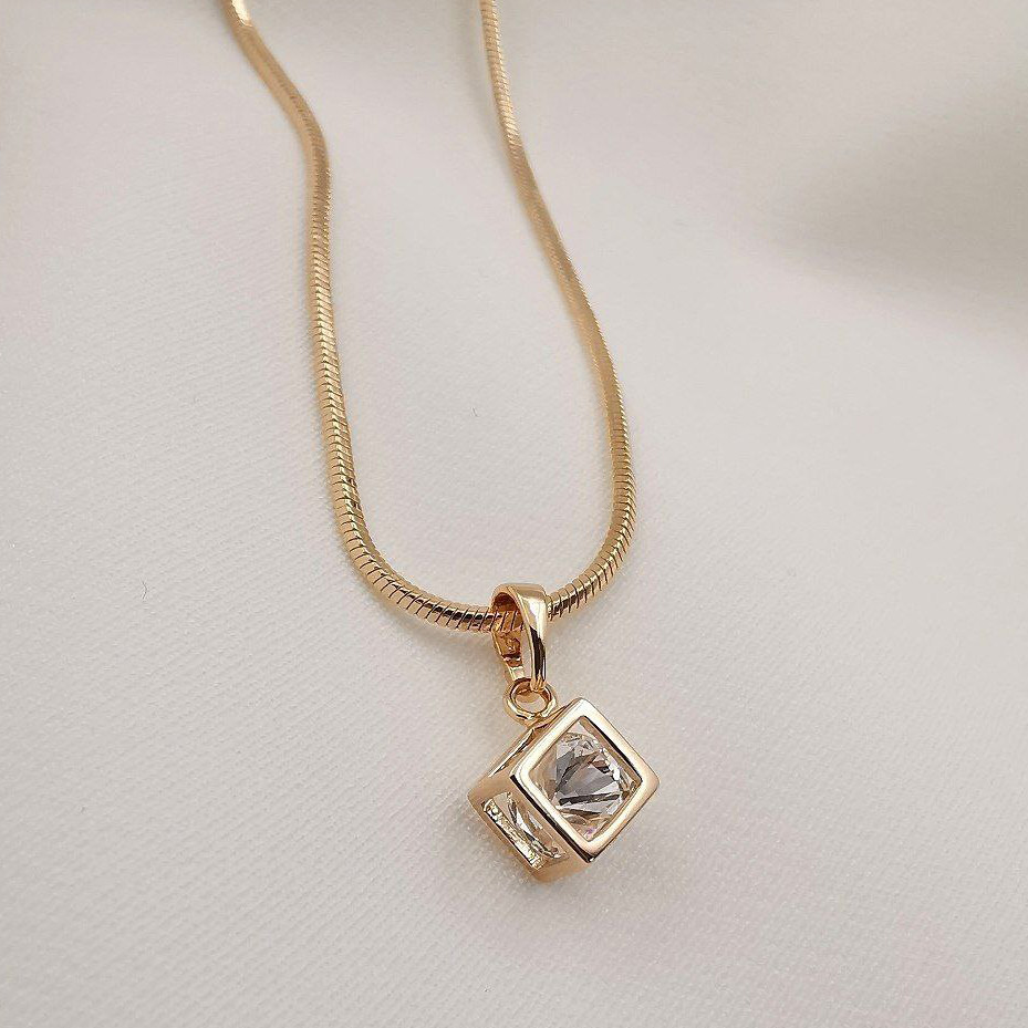 گردنبند زنانه ژوپینگ مدل مکعب تک نگین 333931