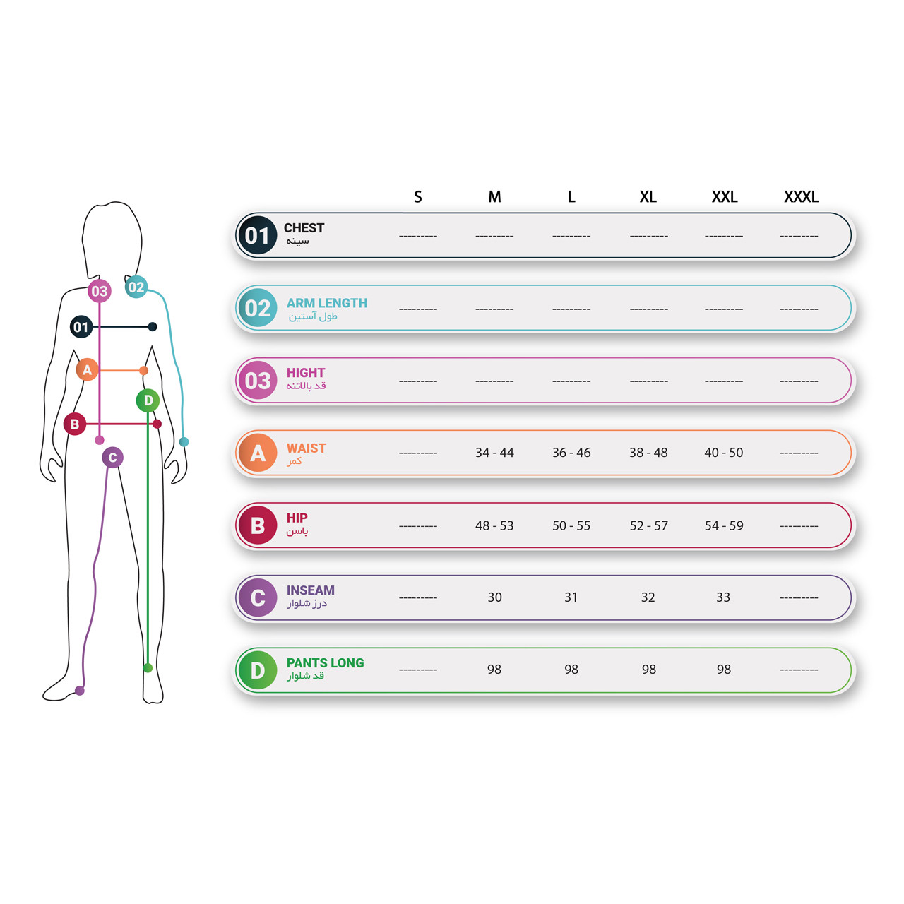- قد لباسزیر مچ پا