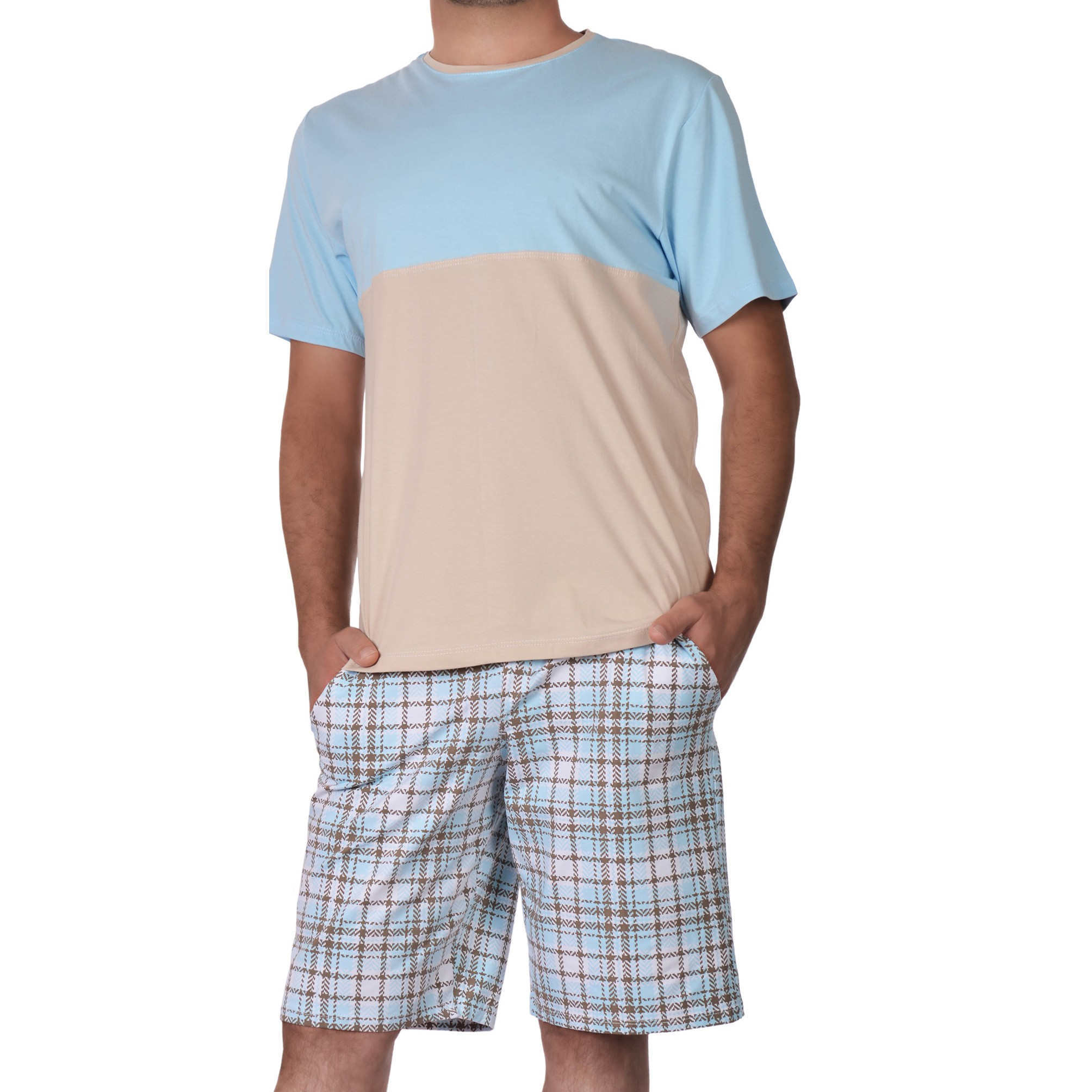 ست تی شرت آستین کوتاه و شلوارک مردانه ناربن مدل 1521300_7051 رنگ آبی روشن