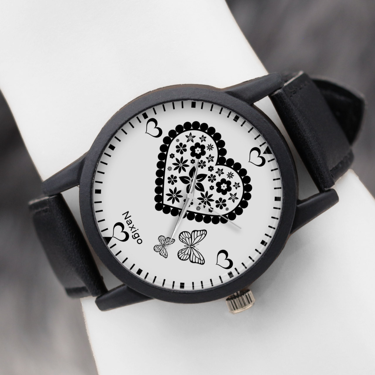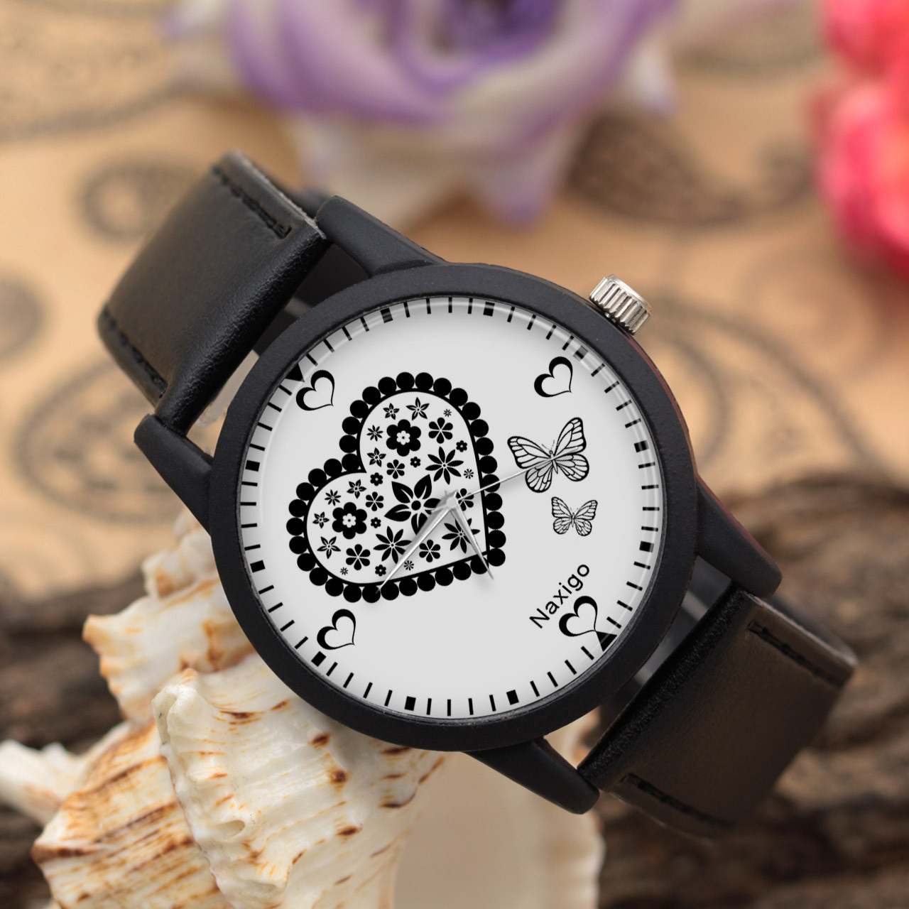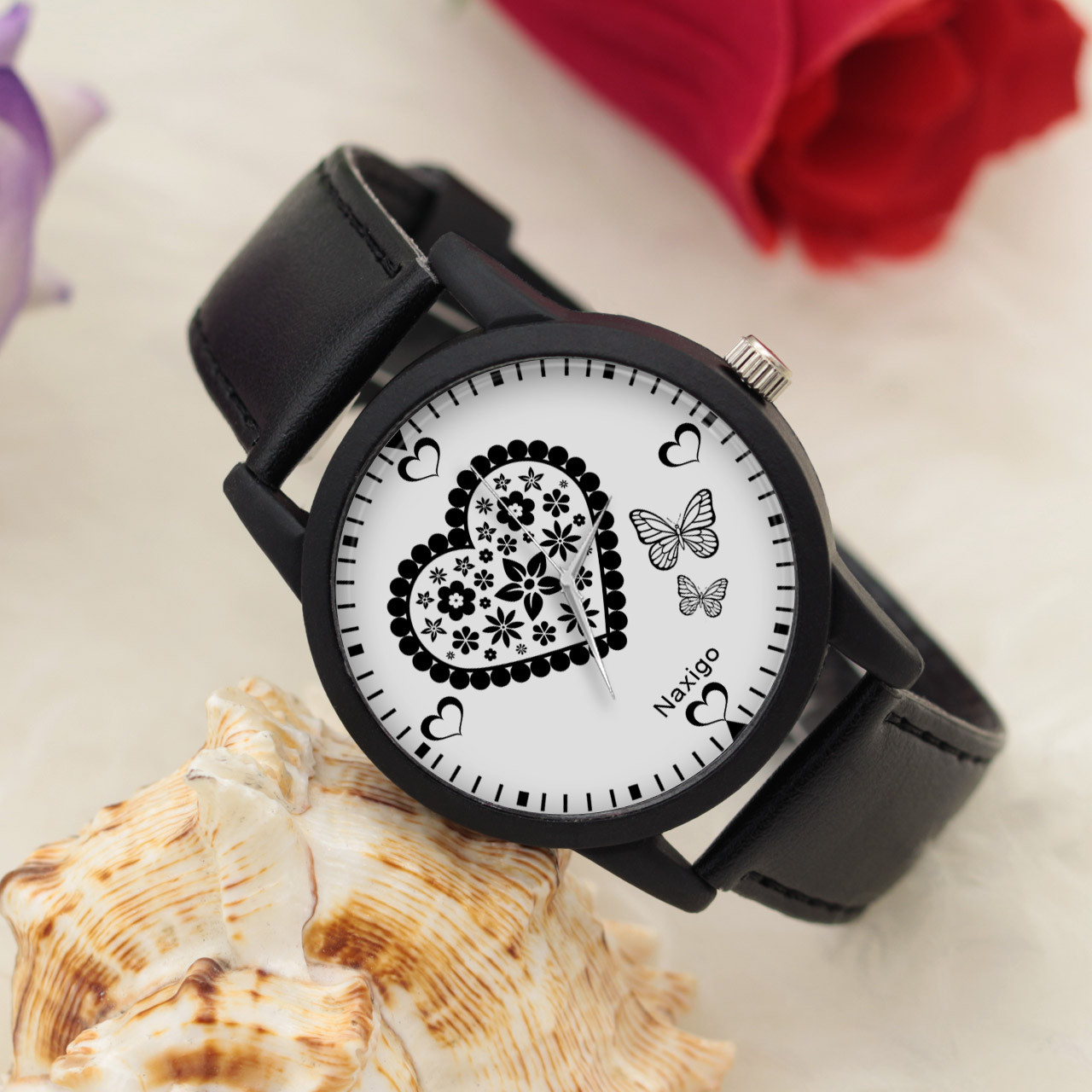 ساعت مچی عقربه ای ناکسیگو مدل قلب و پروانه کد LF11513