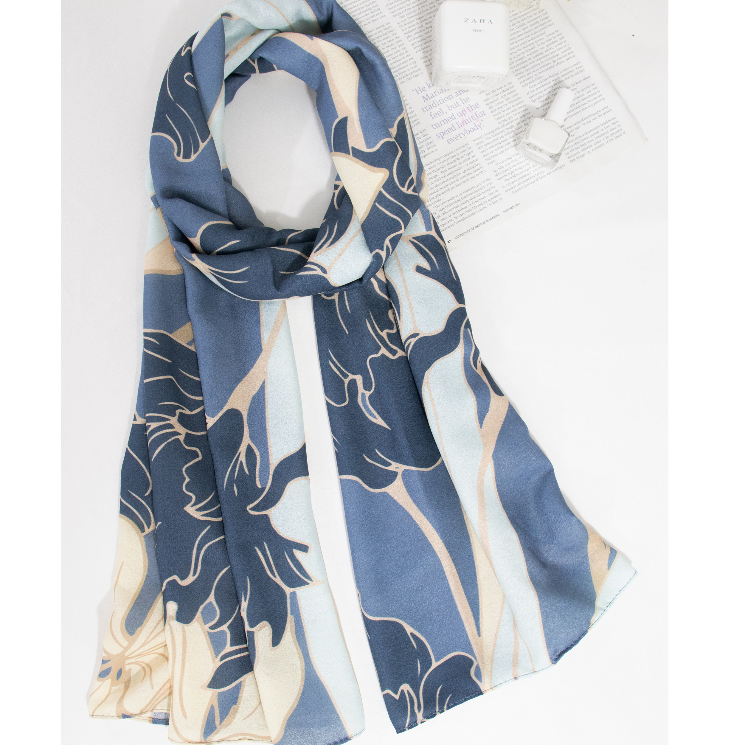 شال زنانه مدل نخ ابریشم پاییزه مزونی طرح گل شاین دار 2109