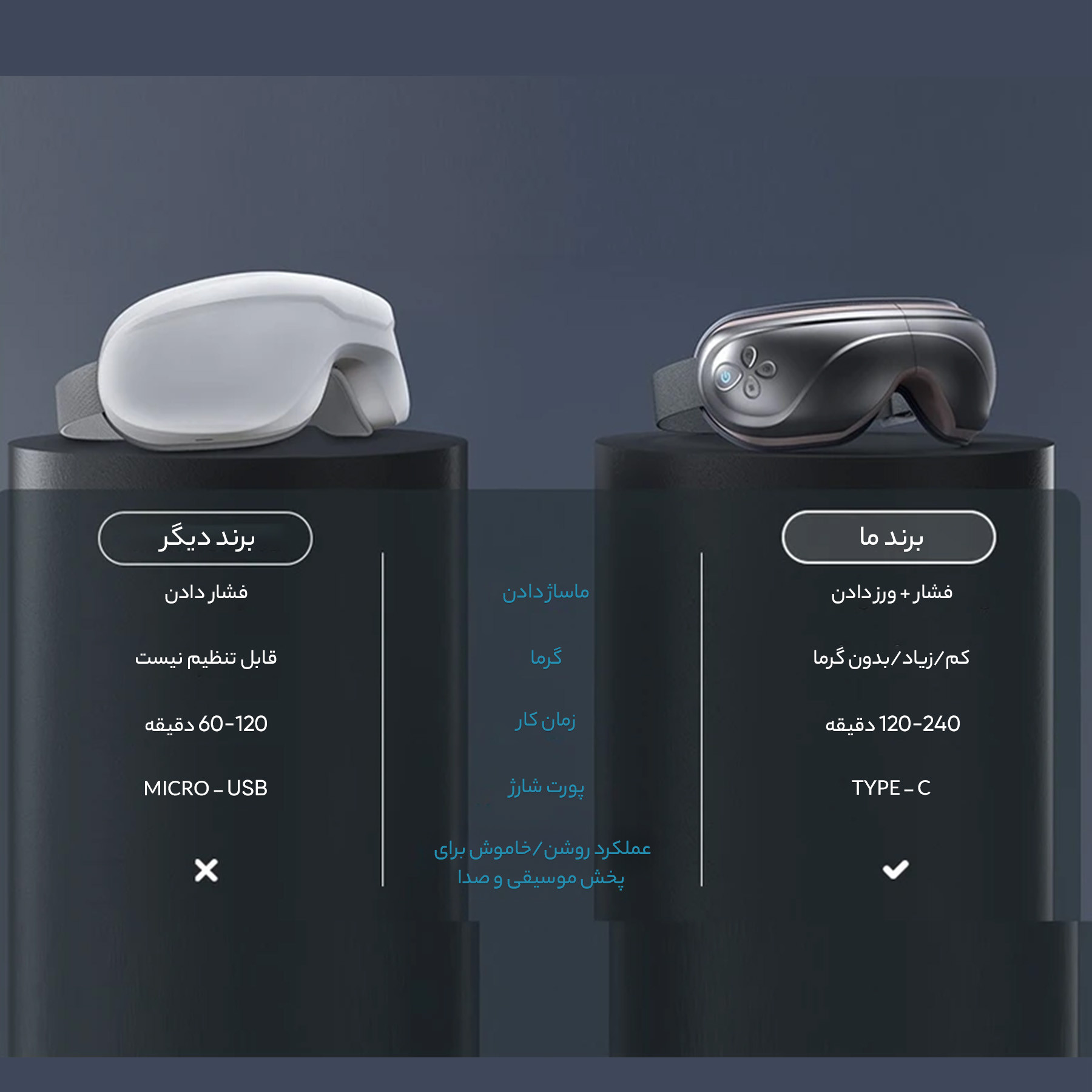 در مورد فشاری که به کره چشم وارد می شود. برای جلوگیری از این امر، دستگاه را روی صورت خود پایین بیاورید. باید شقیقه ها و ناحیه اطراف چشم را ماساژ دهد.