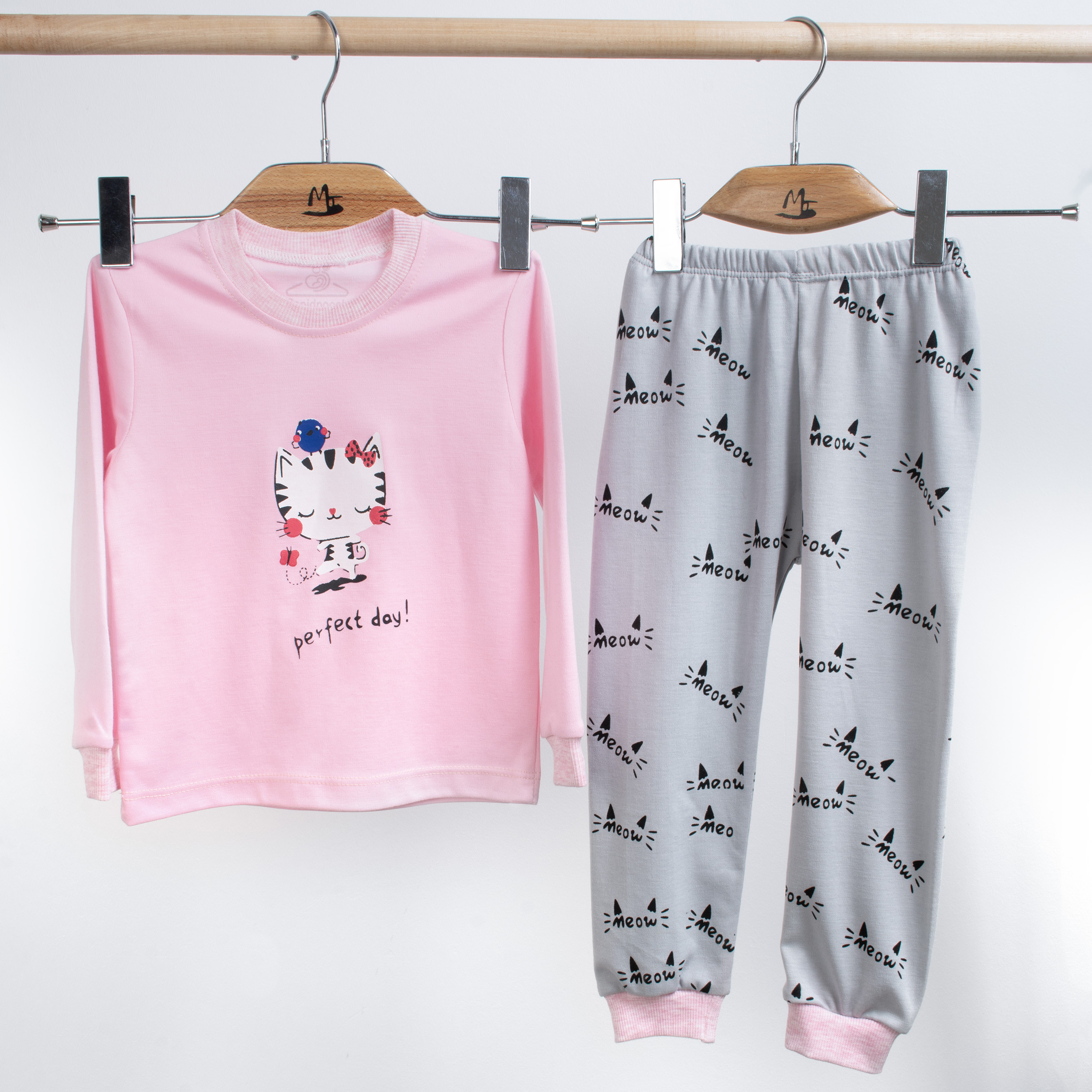 ست تی شرت آستین بلند و شلوار بچگانه سپیدپوش مدل گربه کد 1402310