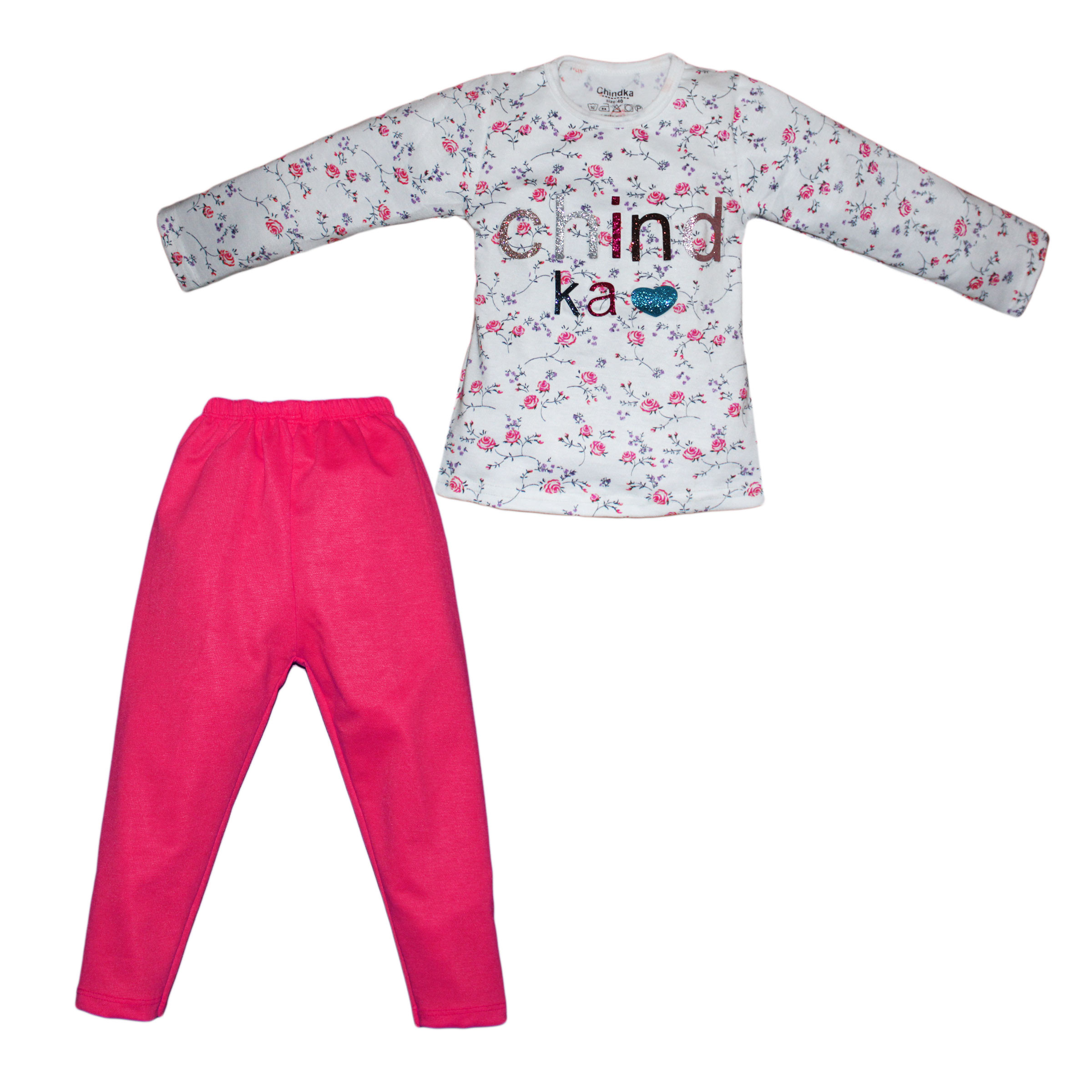 ست تی شرت و شلوار دخترانه چیندکا مدل حروف برجسته کد 112