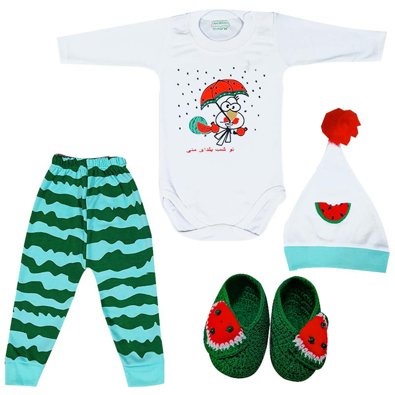 - جزئیاتشامل بادی، شلوار و کلاه و پاپوش