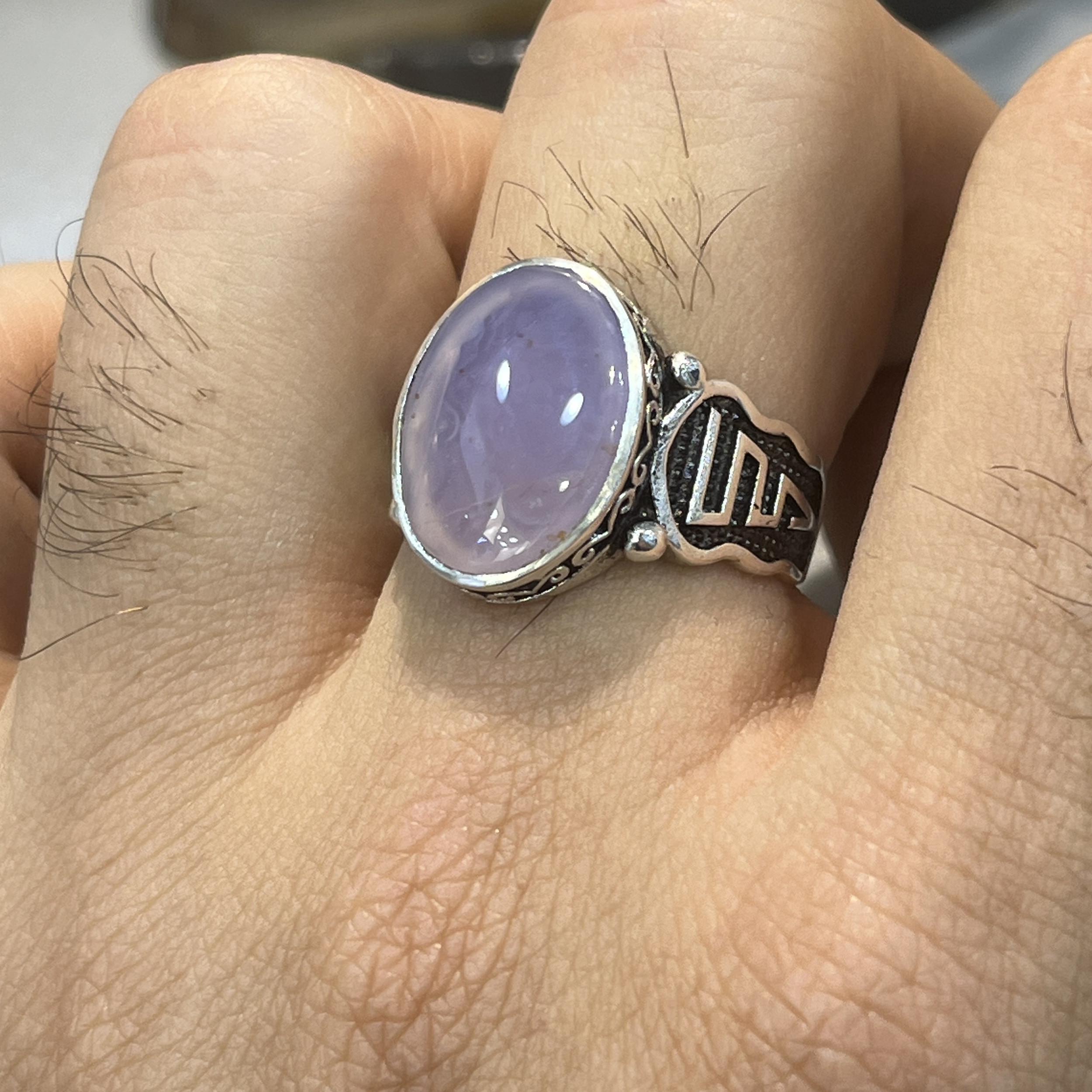 انگشتر نقره مردانه مدل سیاه قلم دستساز مزین به عقیق یمنی کبود 43-24