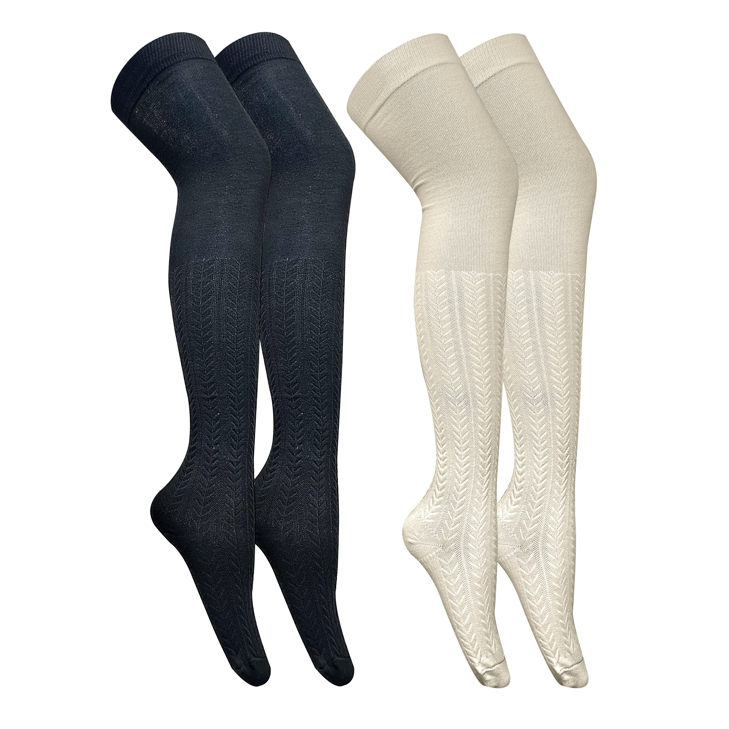 جوراب زنانه تن پوش هنگامه مدل بالا زانو برجسته BW بسته 2 عددی