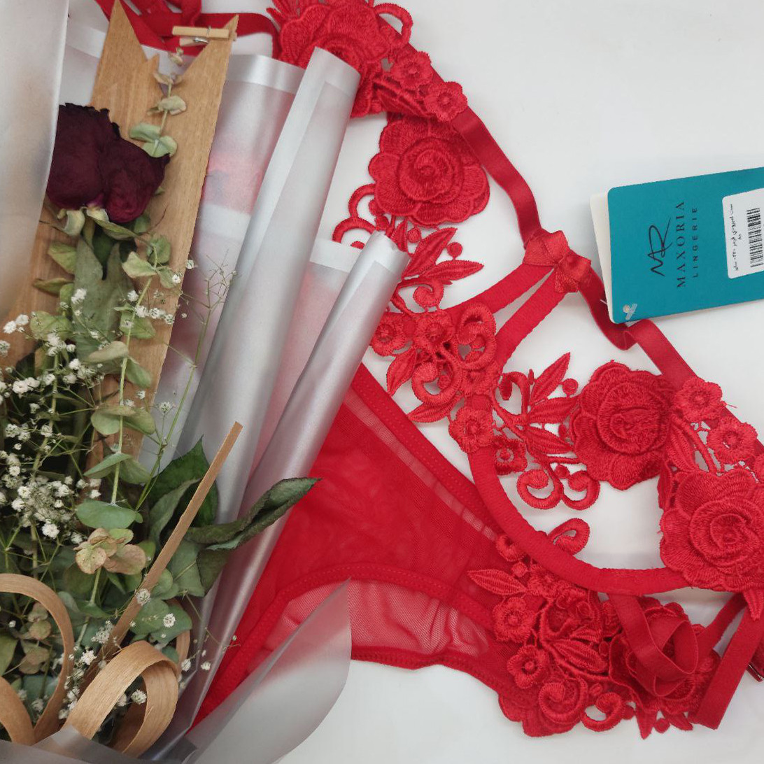 ست شورت و سوتین زنانه مکسوریا مدل انبرودی گلدانتل کد NKU MAX 02201