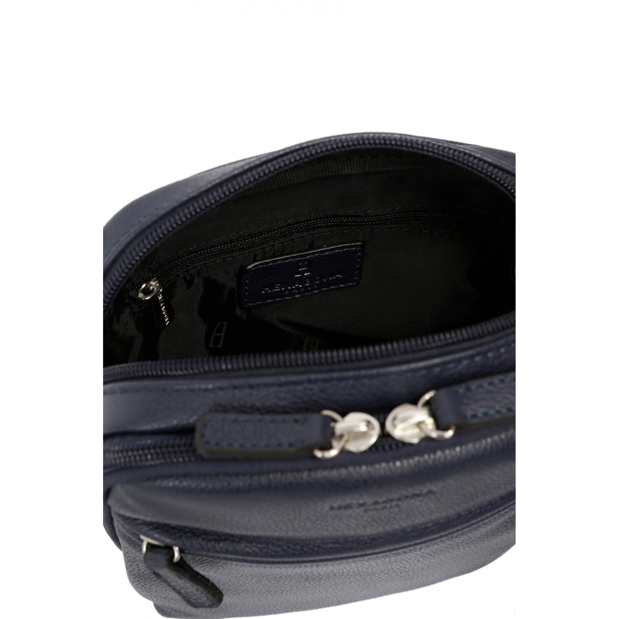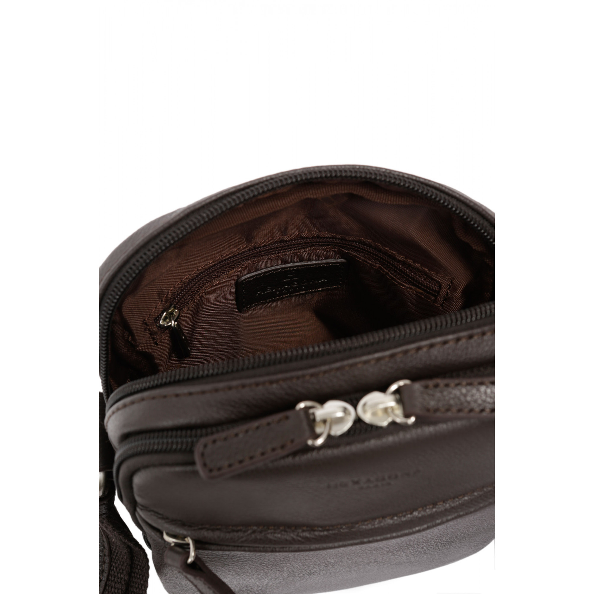 فضای داخلی شامل 2 محفظه اصلی با 1 جیب زیپی تخت ( جیب تخت شامل 1 محفظه تلفن و2 محفظه خودکار است ).