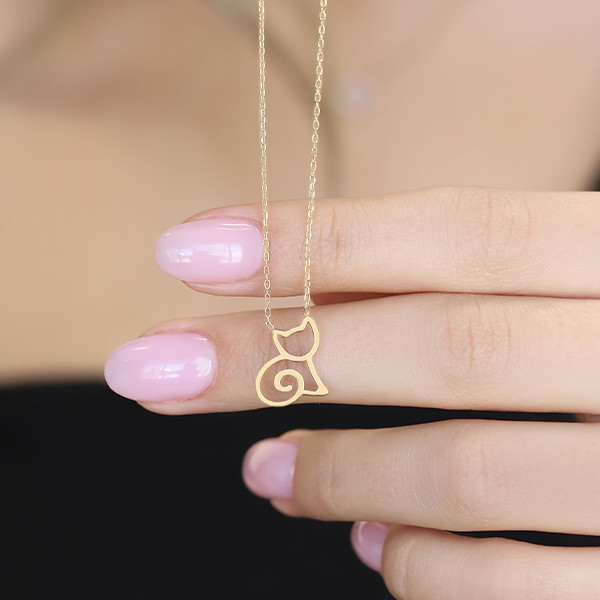 گردنبند طلا 18 عیار زنانه ماوی گالری مدل گربه و فر