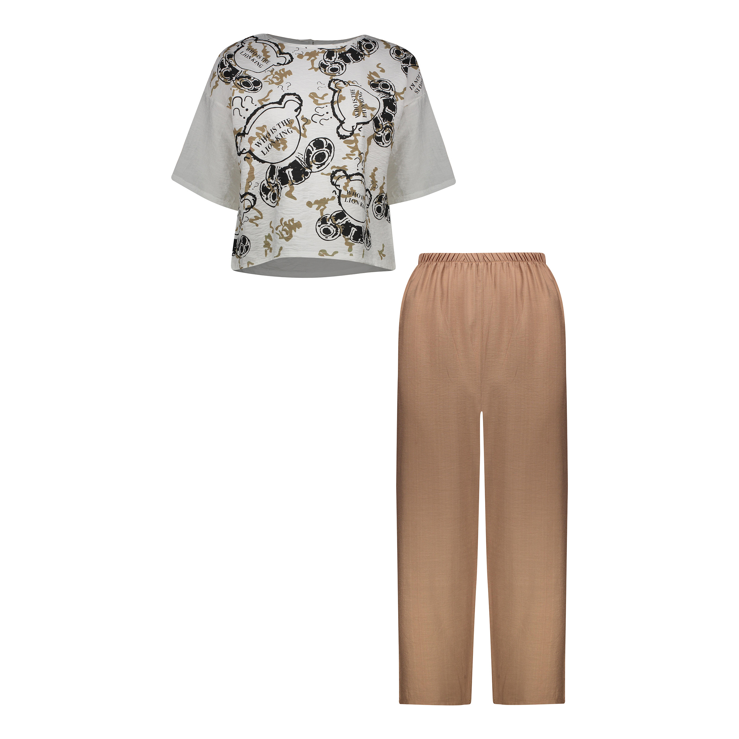 ست بلوز و شلوار دخترانه مونسا مدل 01 طرح کله خرس رنگ کرم