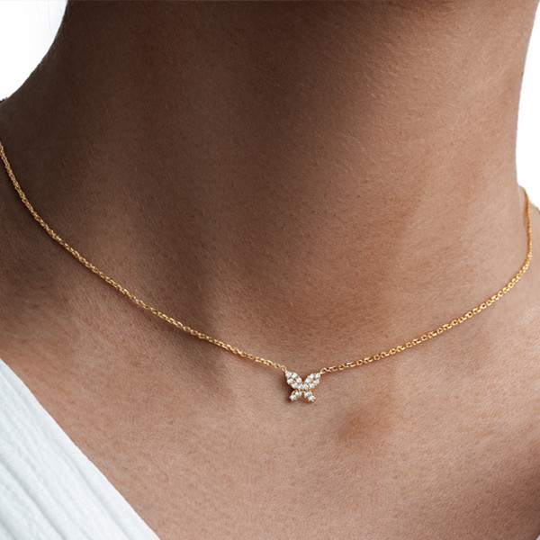گردنبند طلا 18 عیار زنانه ماوی گالری مدل پروانه نگینی