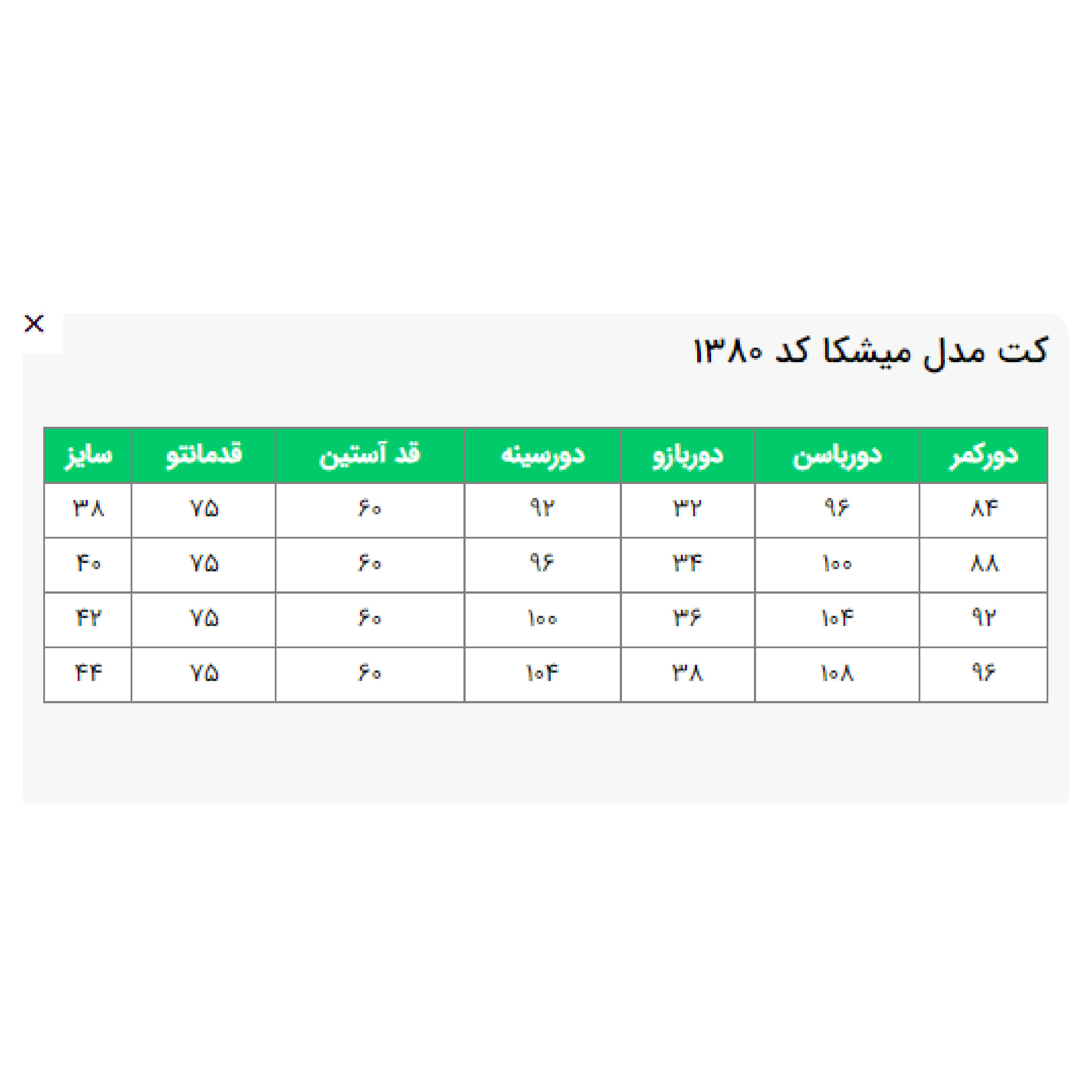 دورسینه سایز 44: 104