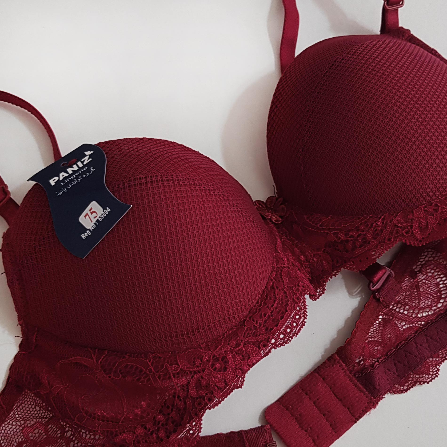 سوتین زنانه پانیذ مدل فنردار پوش آپ کد 4851 رنگ زرشکی