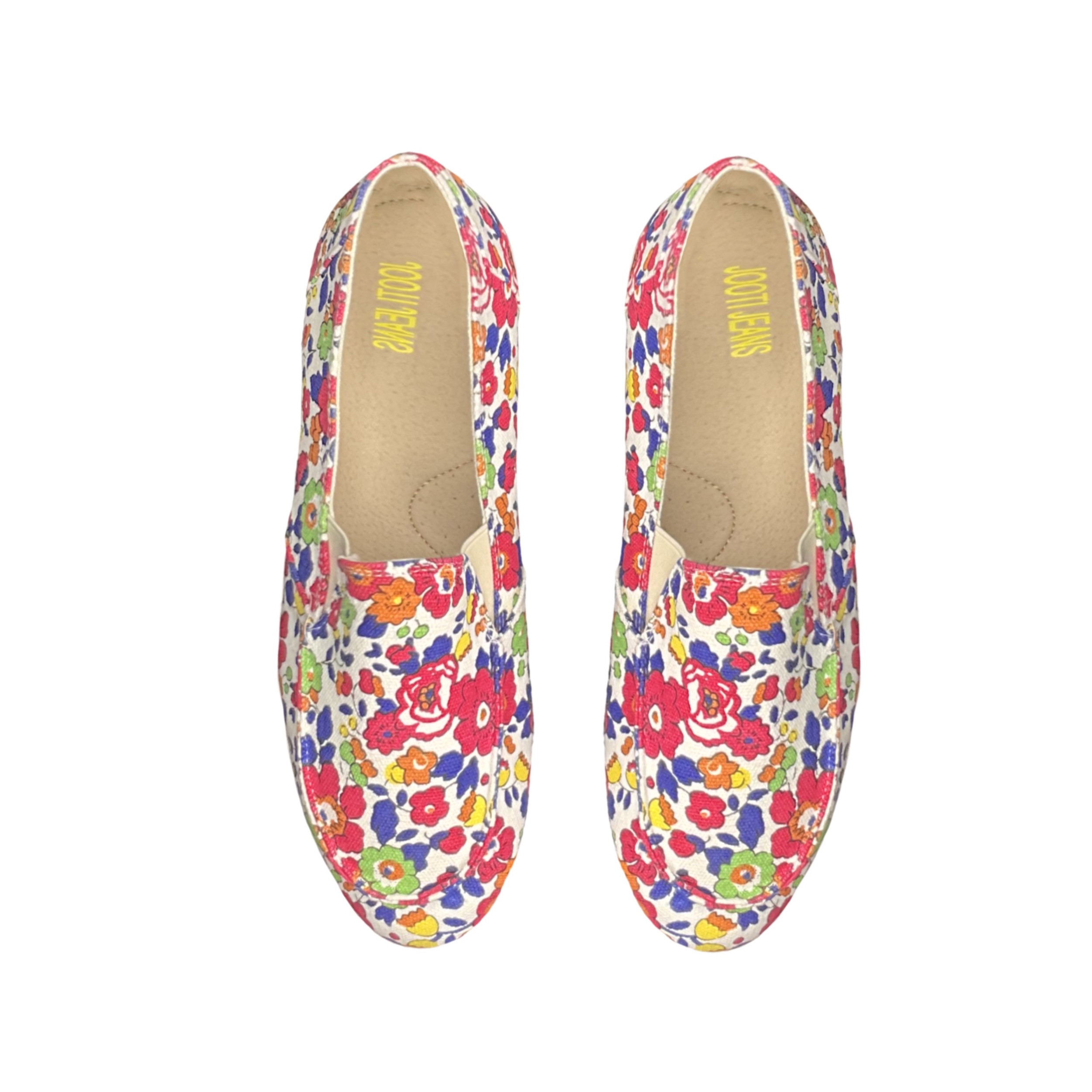 - جزئیاترویه کفش از جنس کتان گلدار درجه یک رنگ ثابت می باشد . طرج آن سنتی و بسیار شیک و جذاب و فوق العاده راجت و نرم و سبک است .