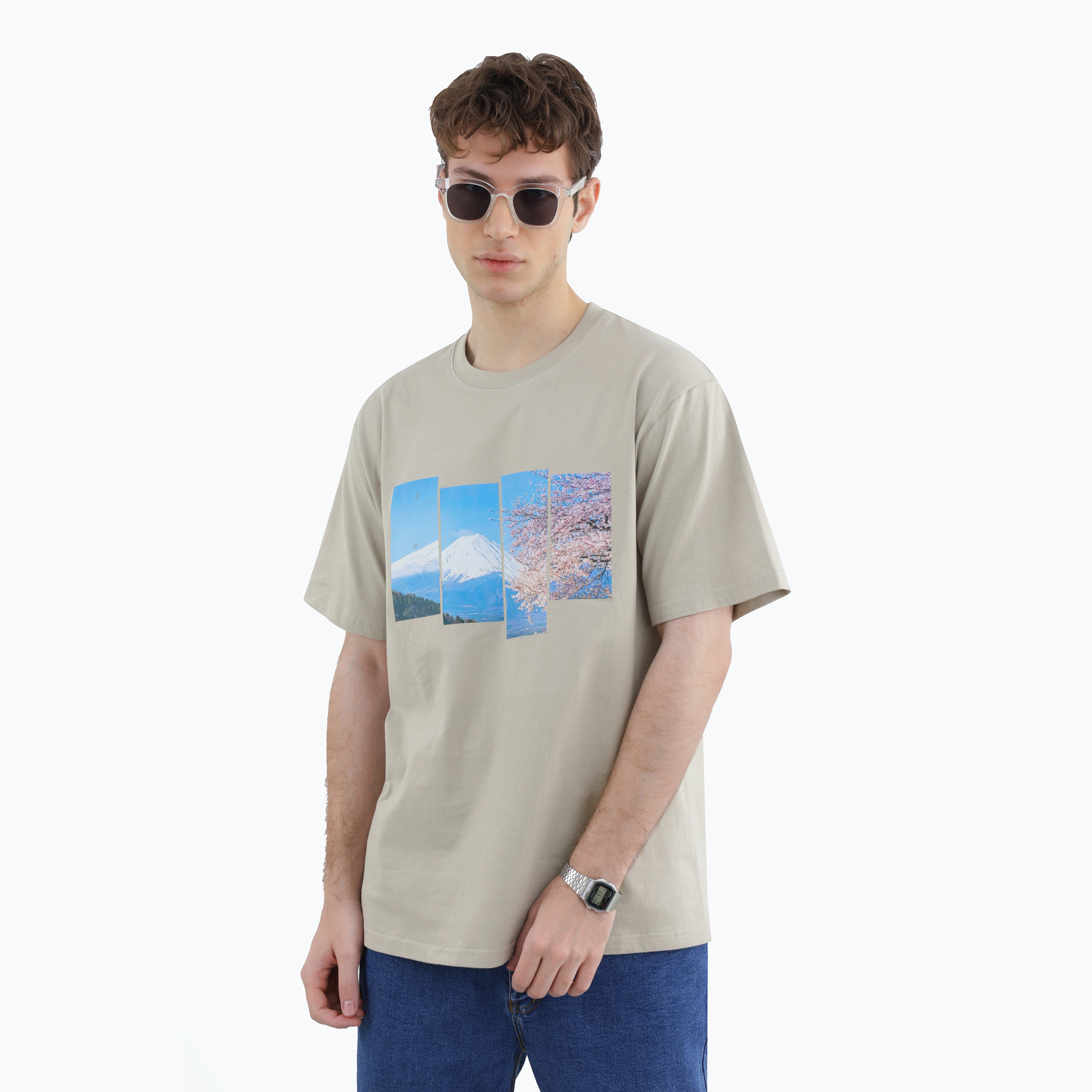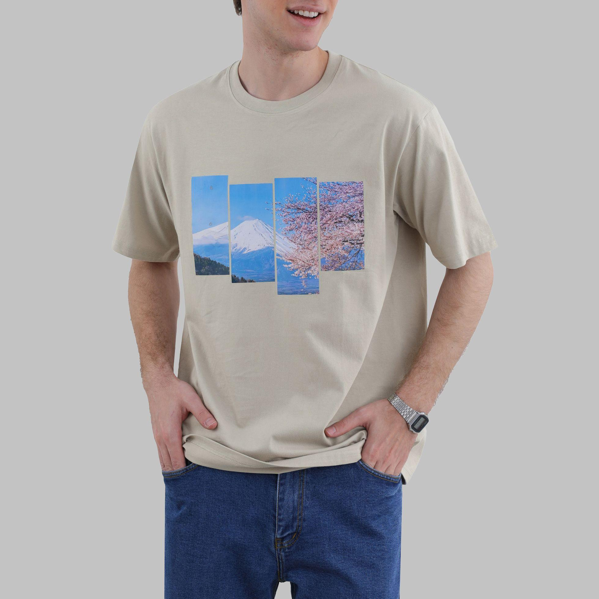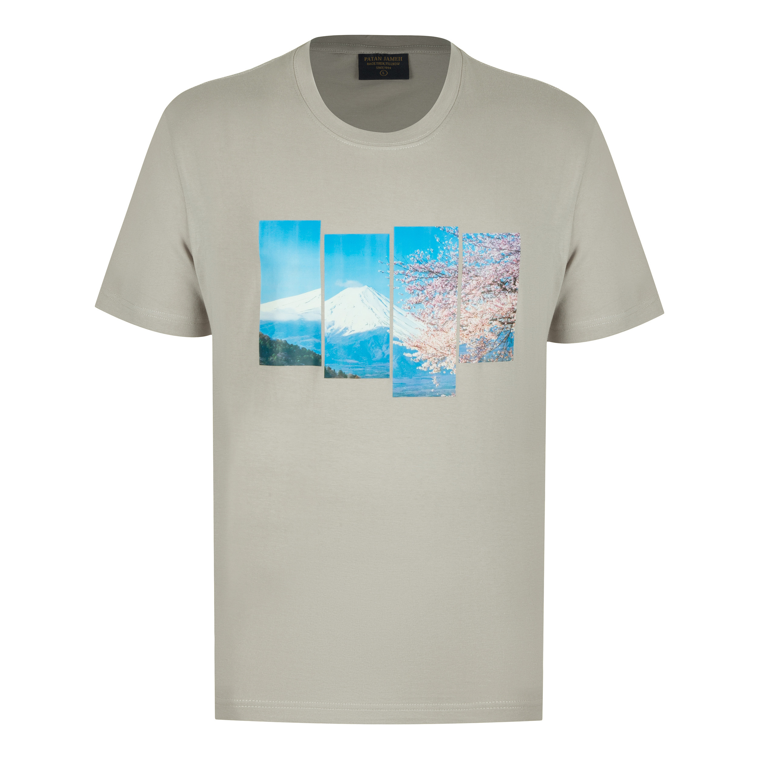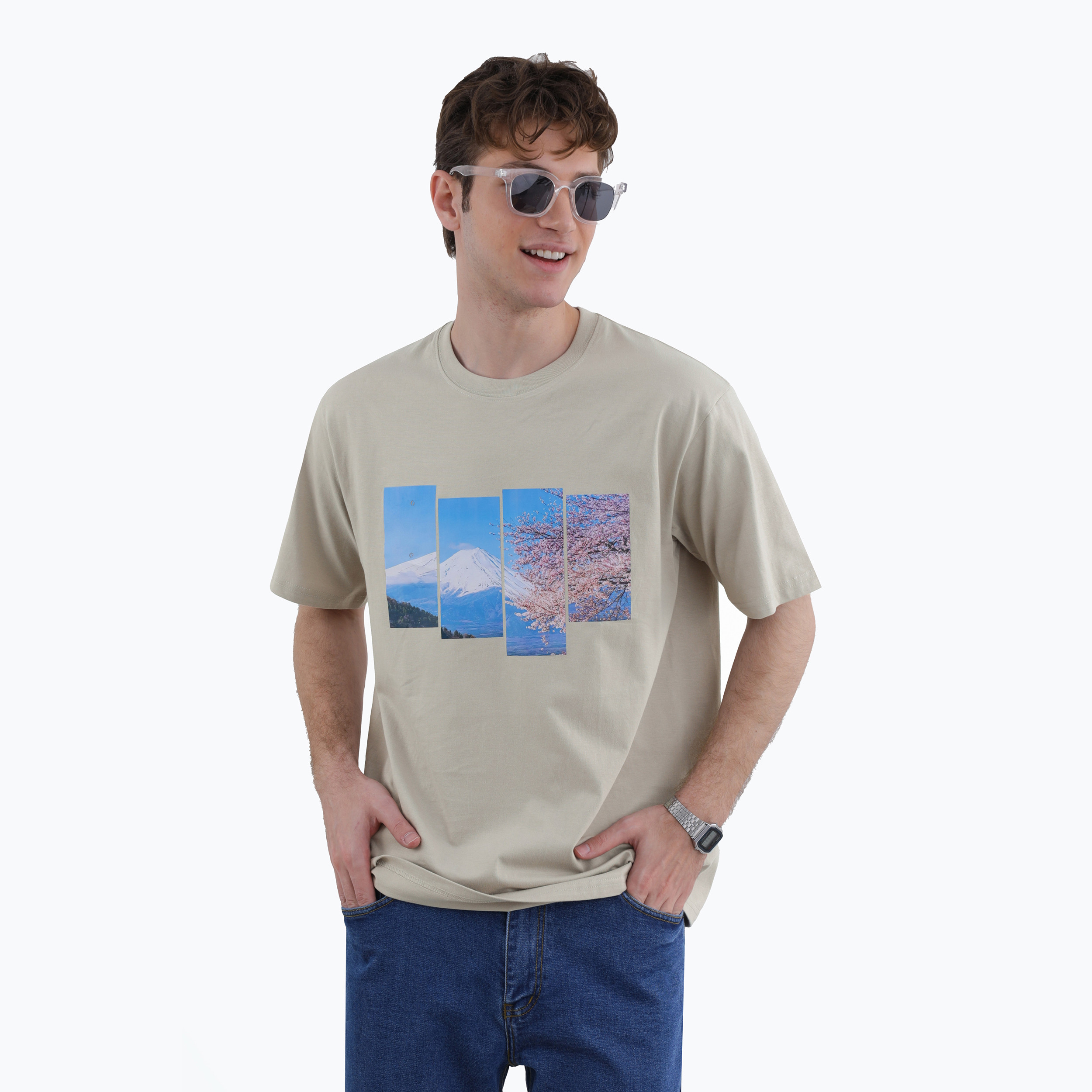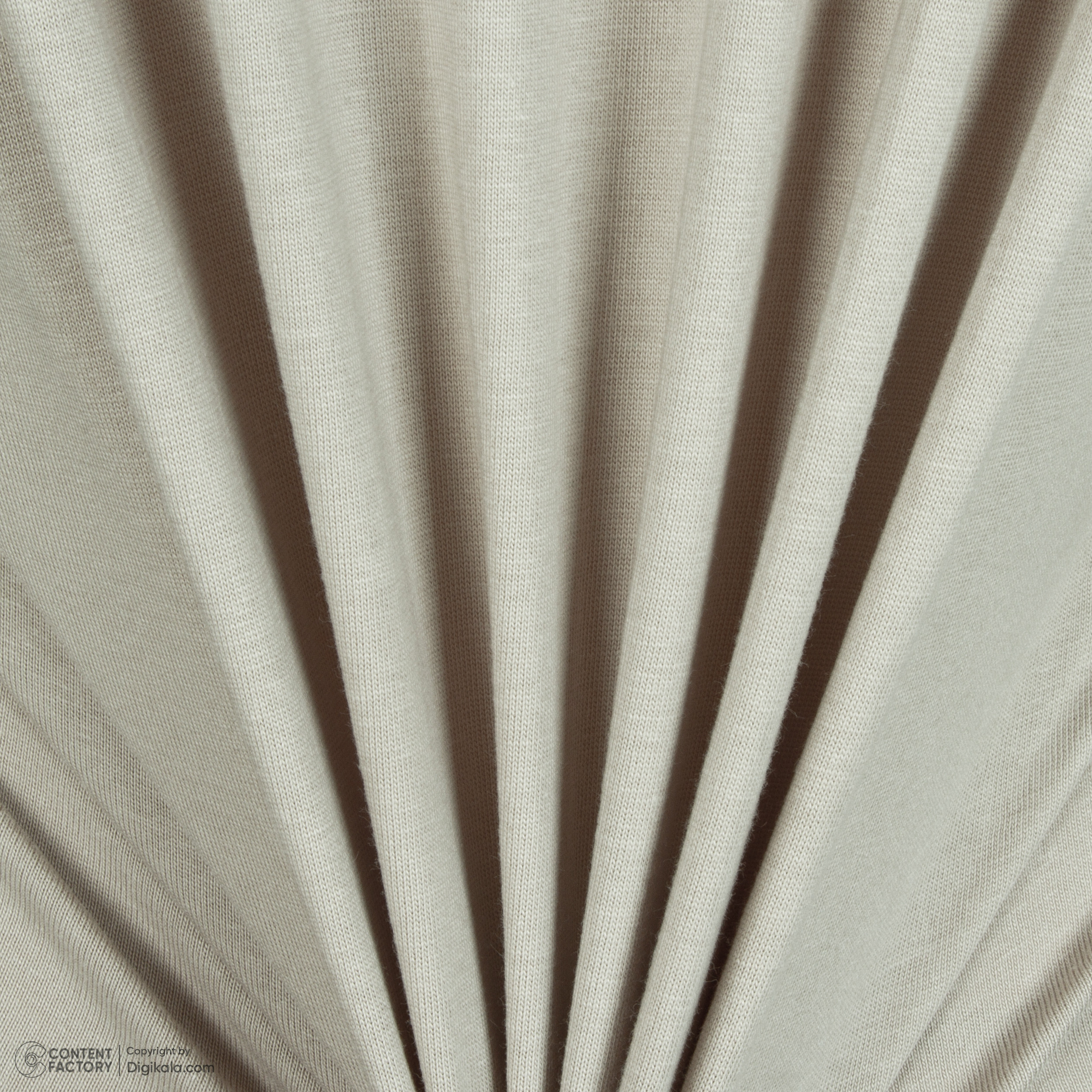- جزئیاتچاپدرا / قد در سایز های M , L نسبتاً کوتاه تر می باشد / یقه گرد کشبافت / رنگ خاکی روشن