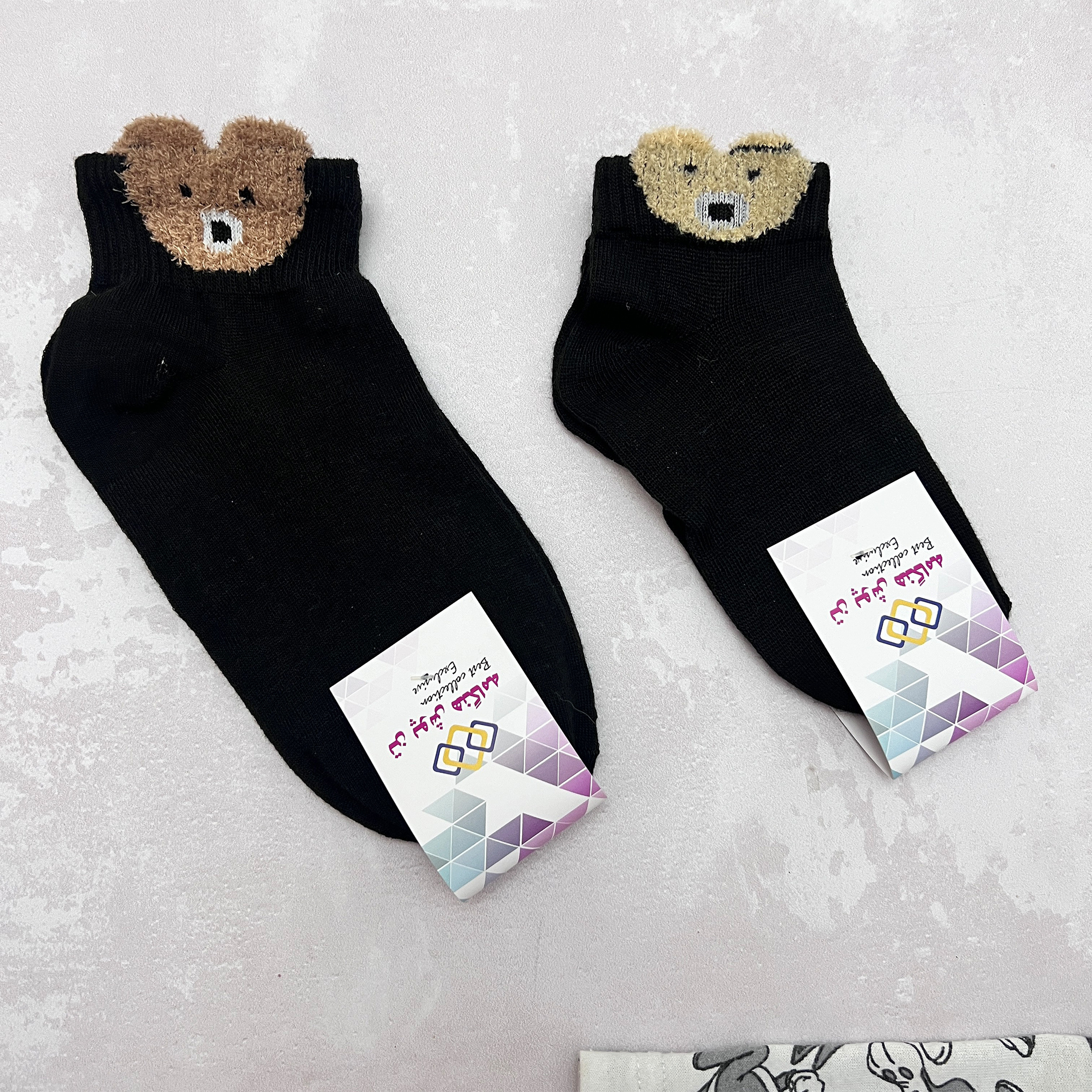 جوراب زنانه تن پوش هنگامه مدل مادر و کودک بوکله خرس گوش دار بسته 2 عددی