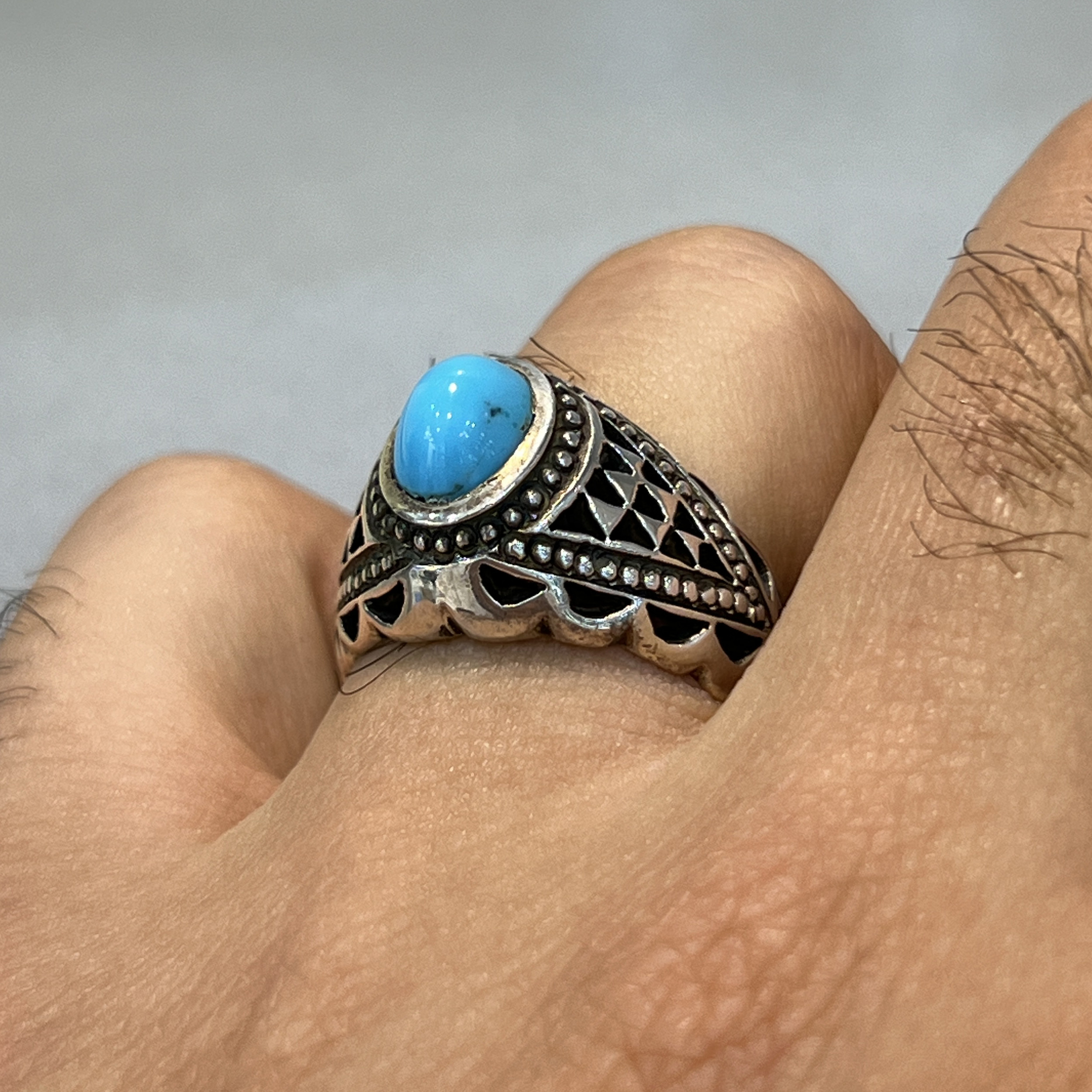 انگشتر نقره مردانه مدل شبکه زنی دستساز مزین به فیروزه نیشابوری 0-24