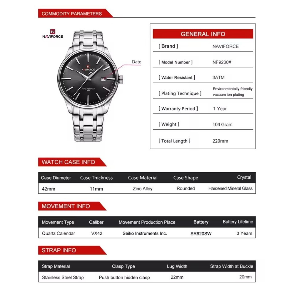 ساعت مچی عقربهای کوارتز مردانه نیوی فورس مدل NF9230SBS