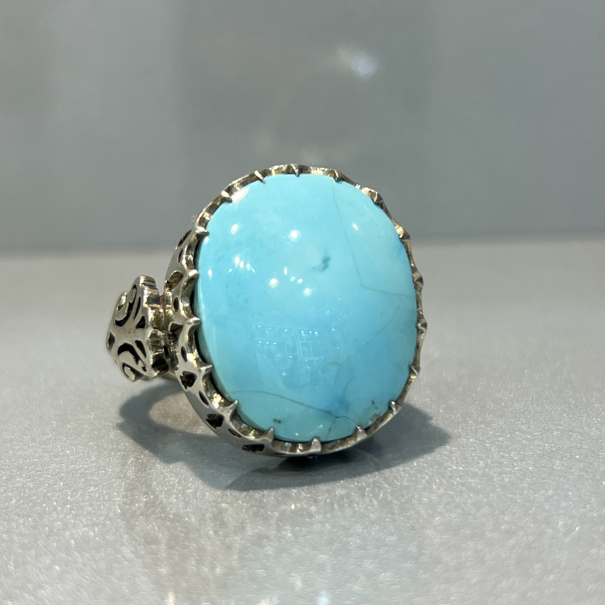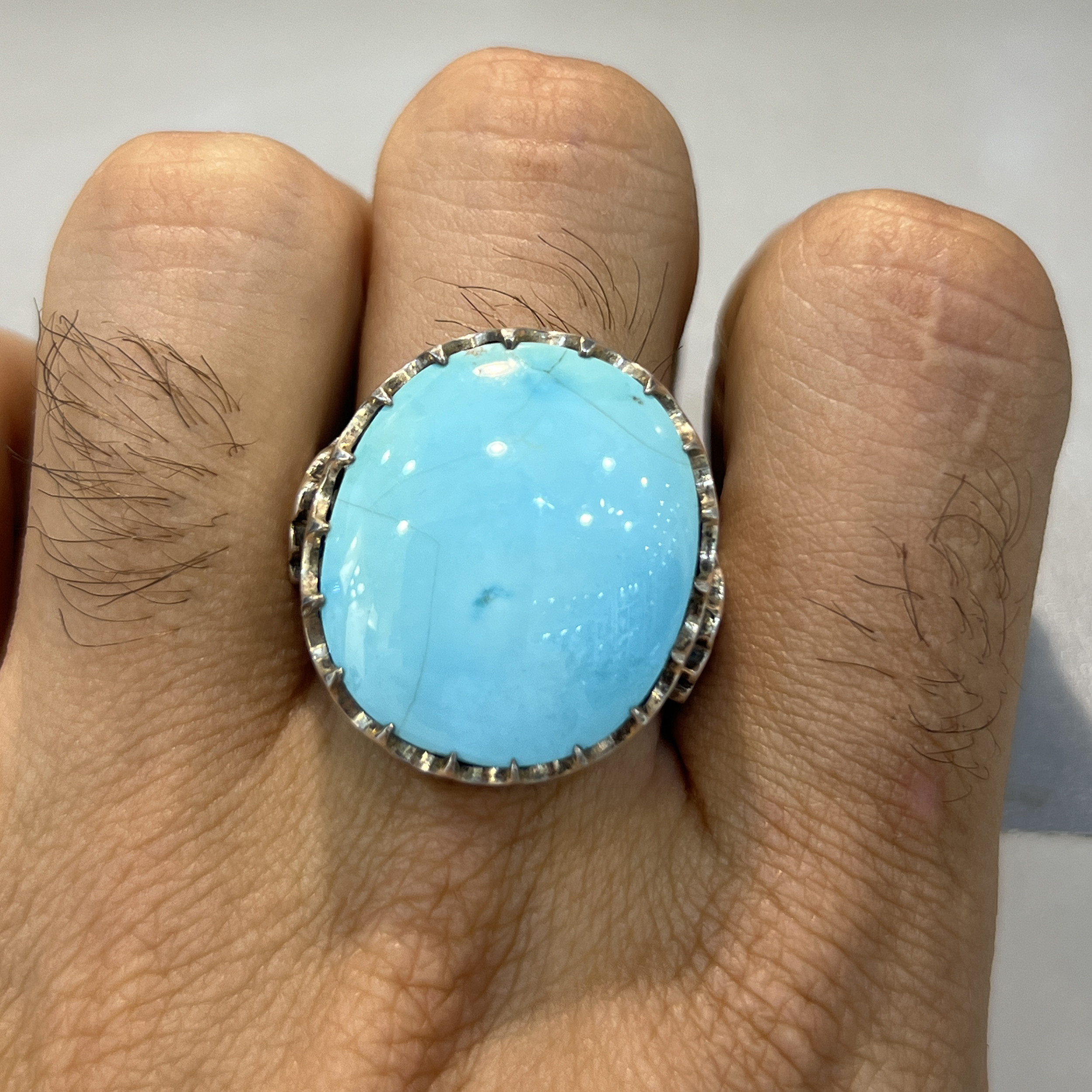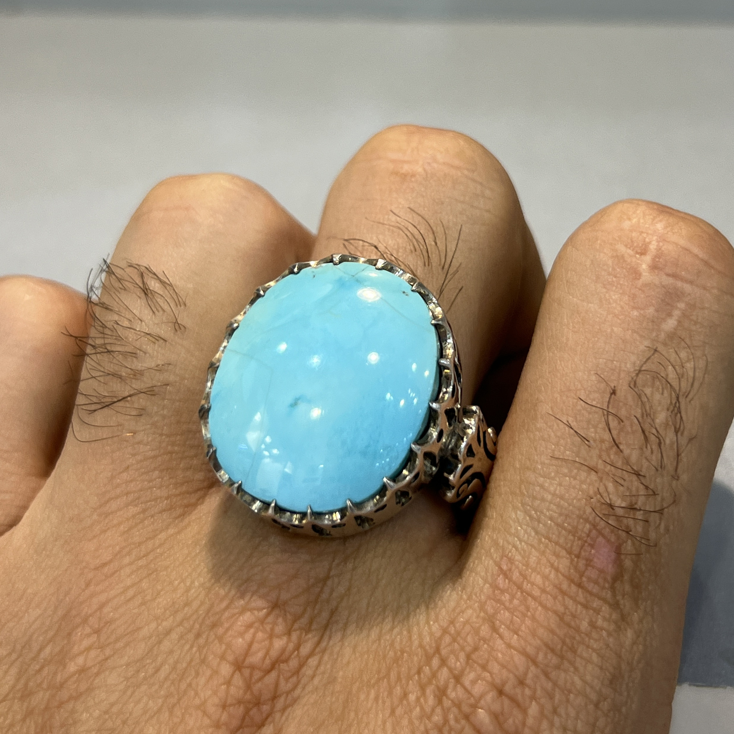 انگشتر نقره مردانه مدل اسپرت با نگین فیروزه نیشابوری 142