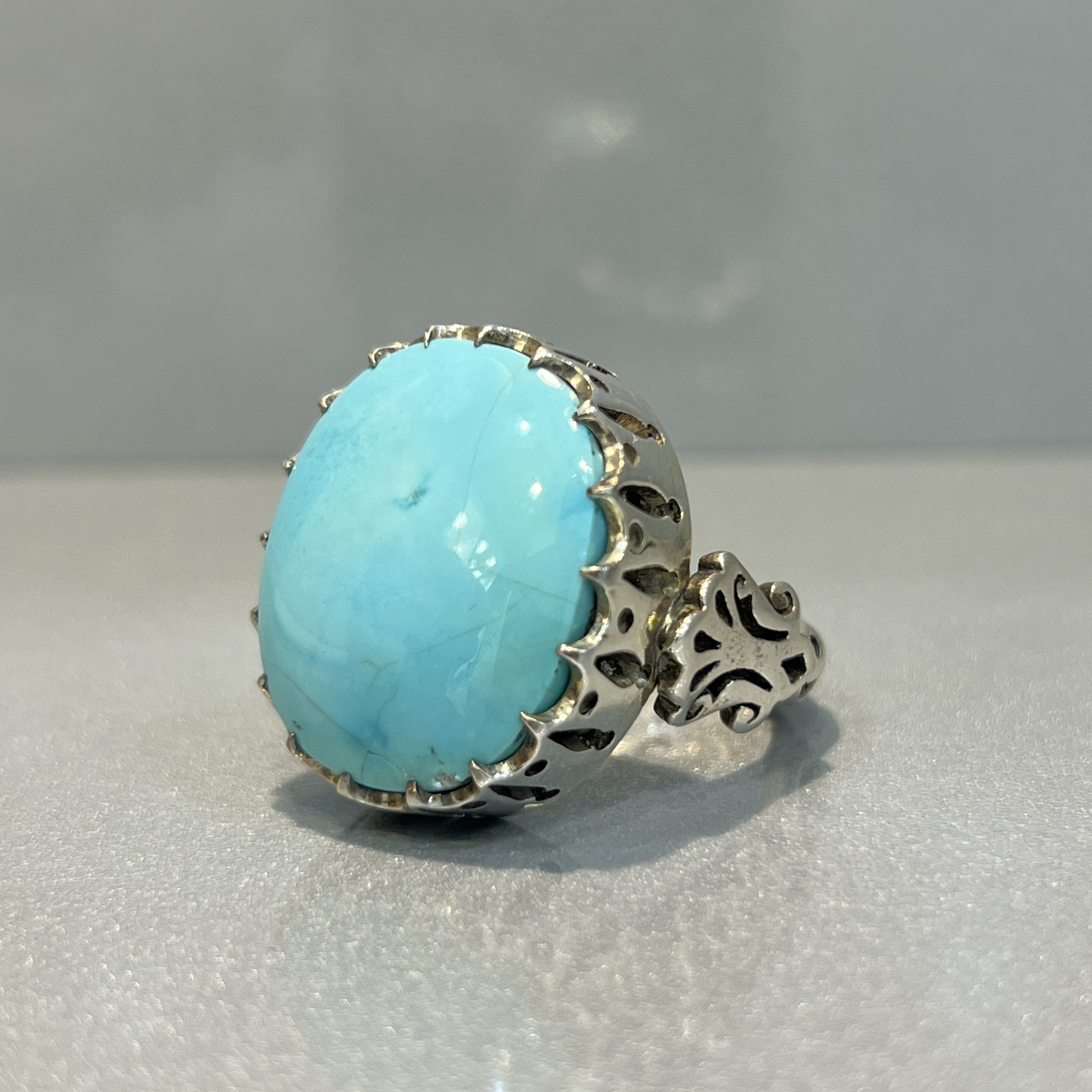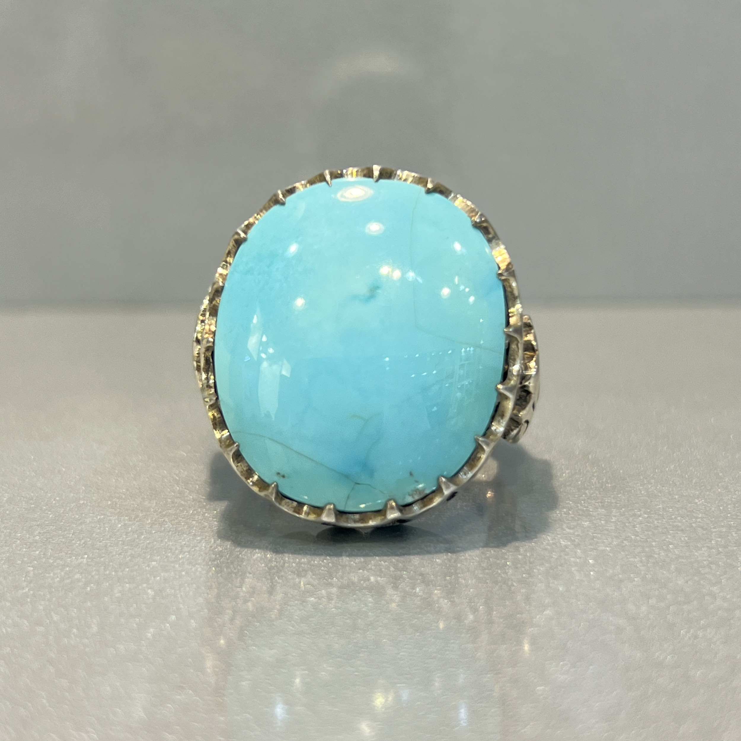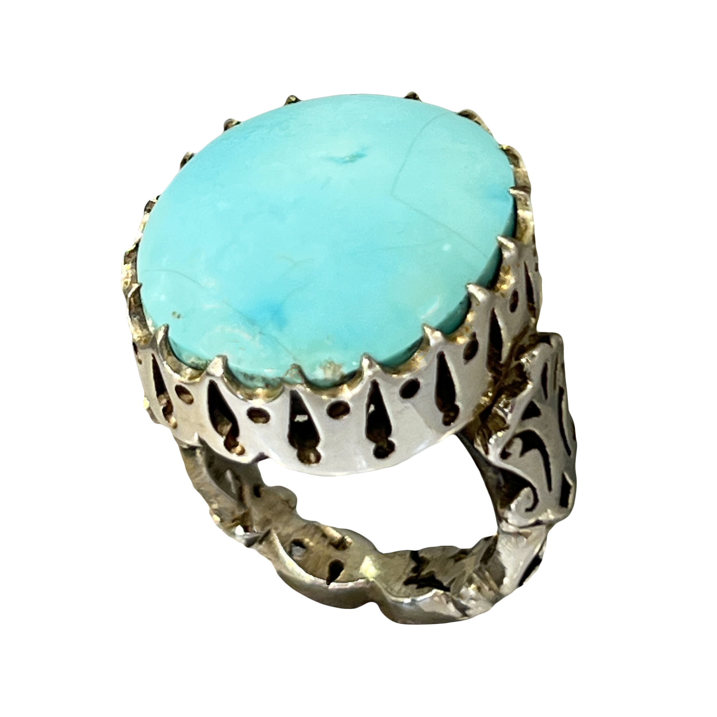 انگشتر نقره مردانه مدل اسپرت با نگین فیروزه نیشابوری 142