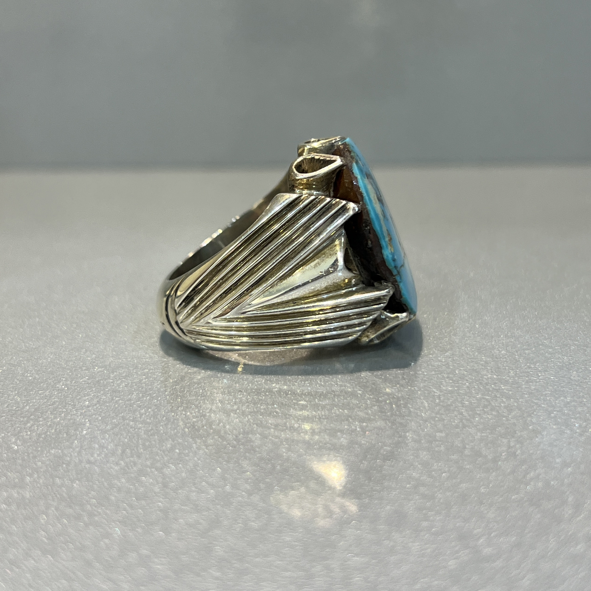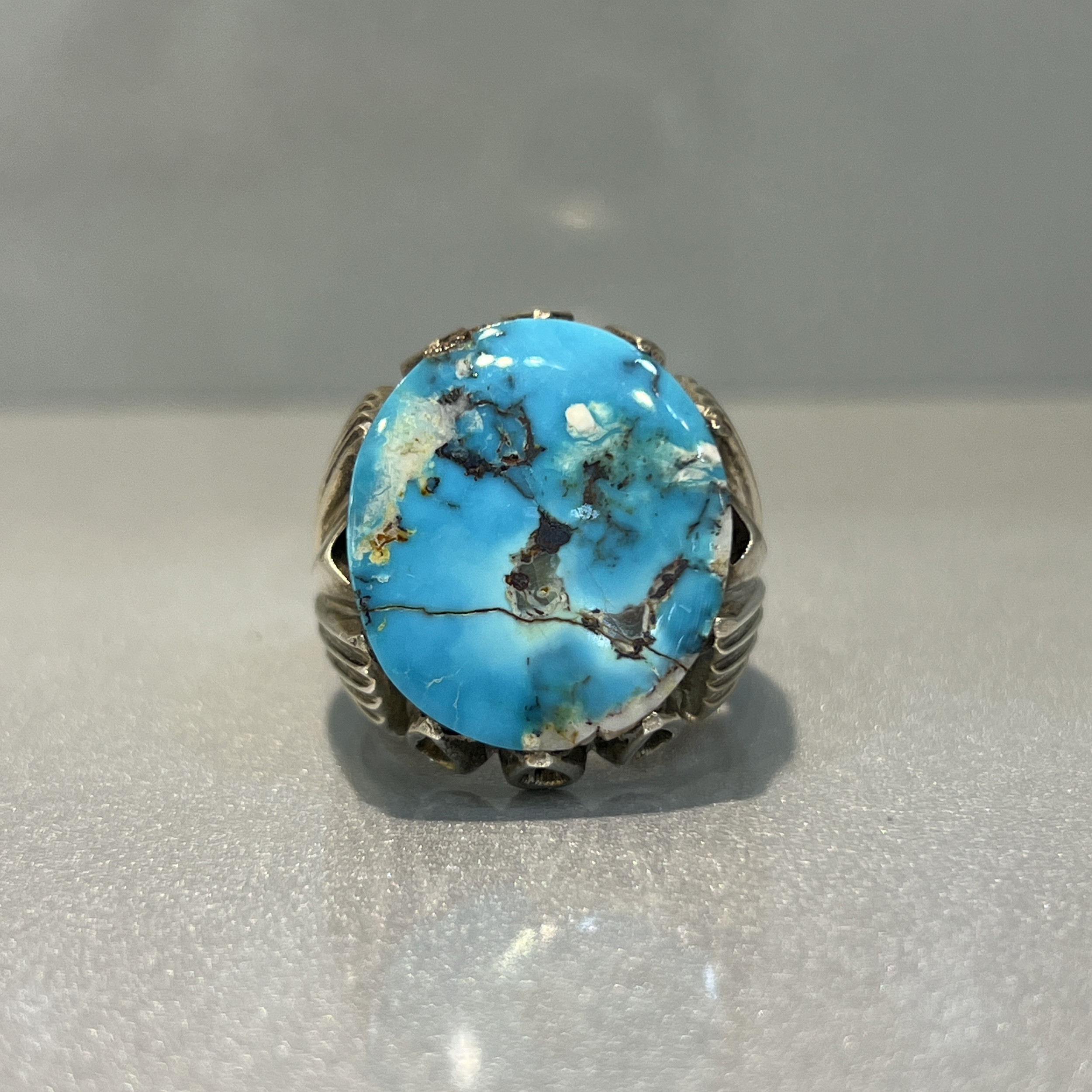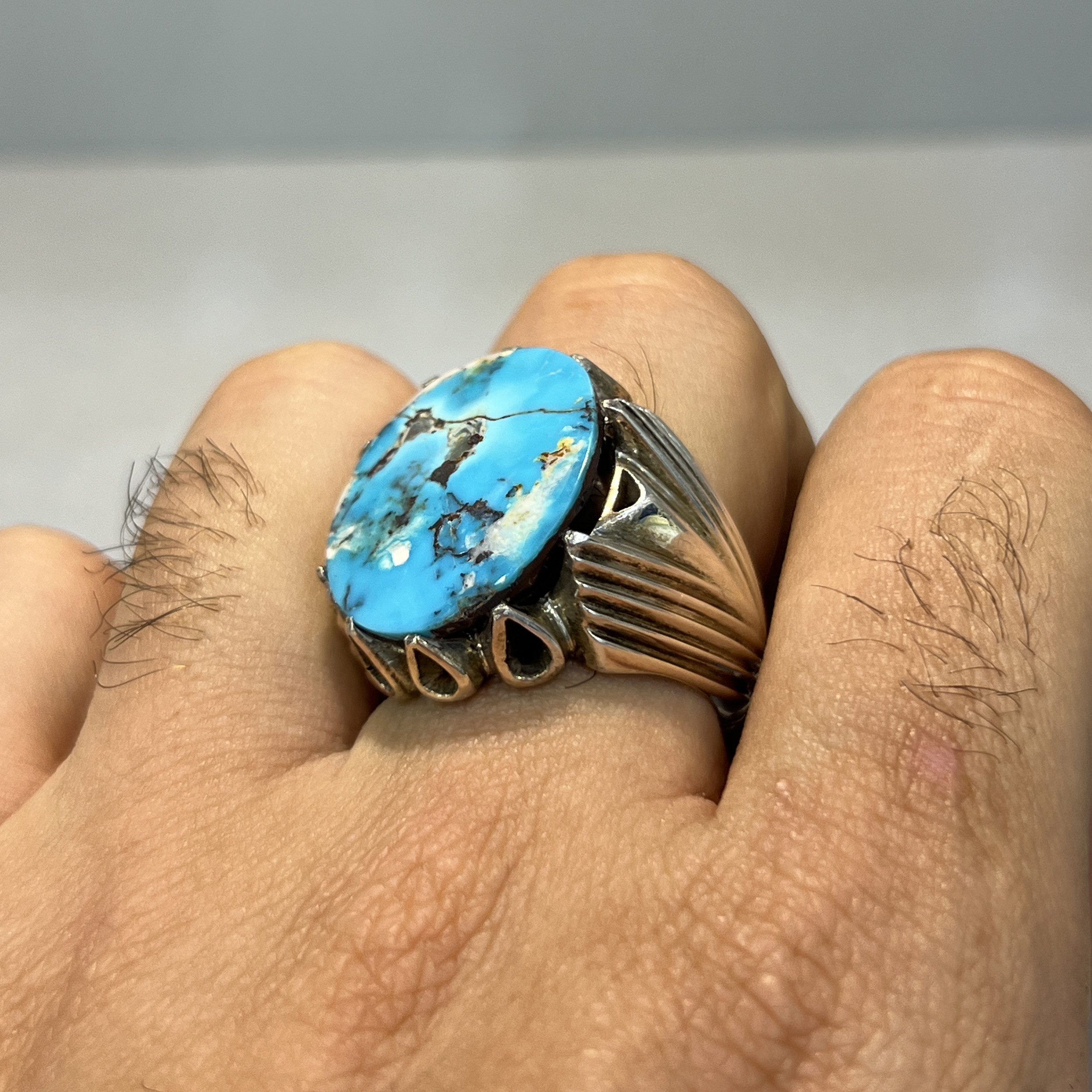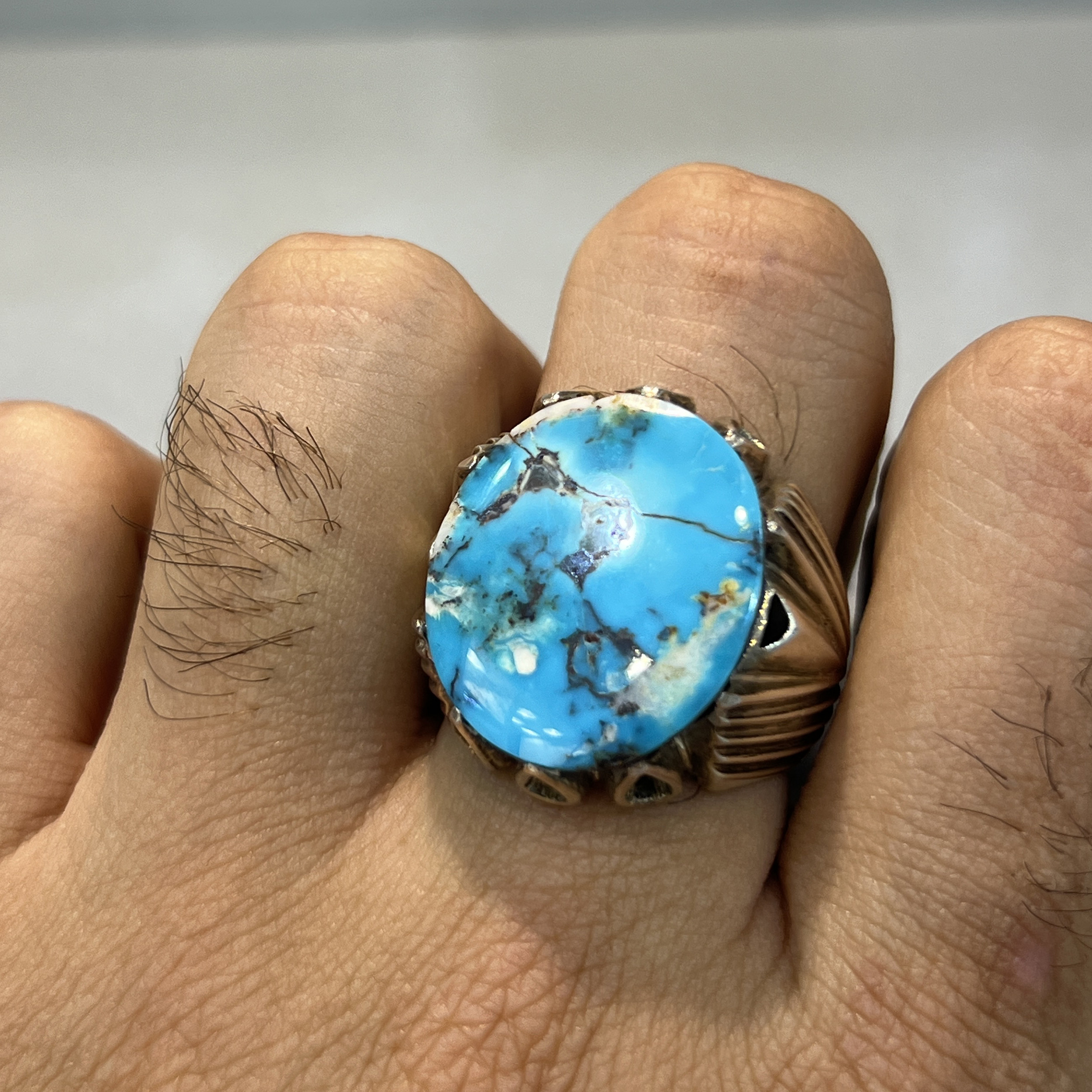 انگشتر نقره مردانه مدل اسپرت نگین فیروزه نیشابوری