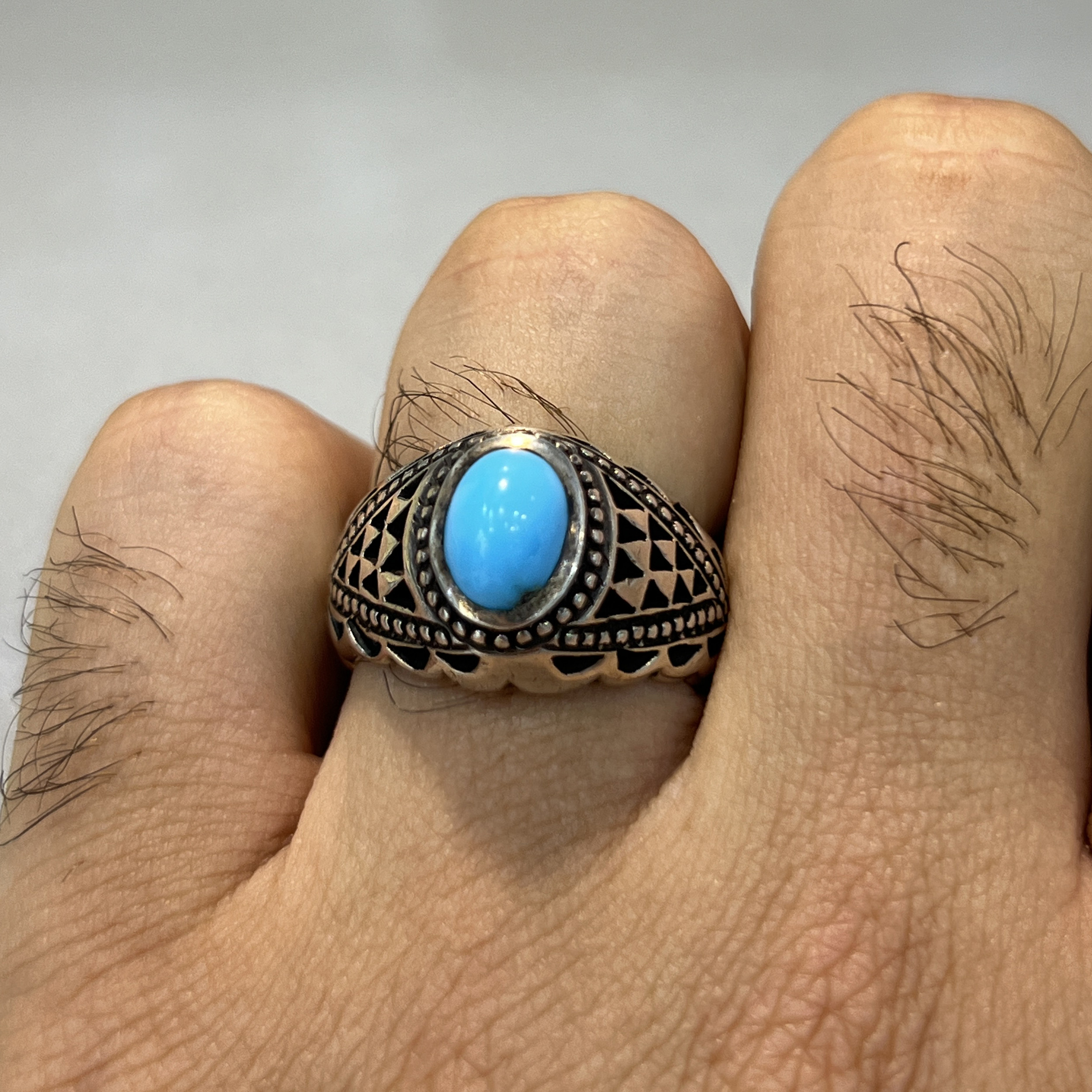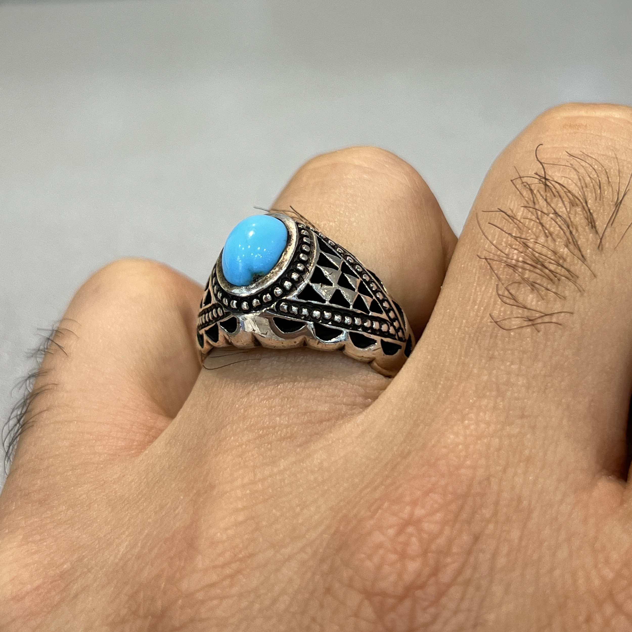 انگشتر نقره مردانه مدل اسپرت نگین فیروزه نیشابوری 168