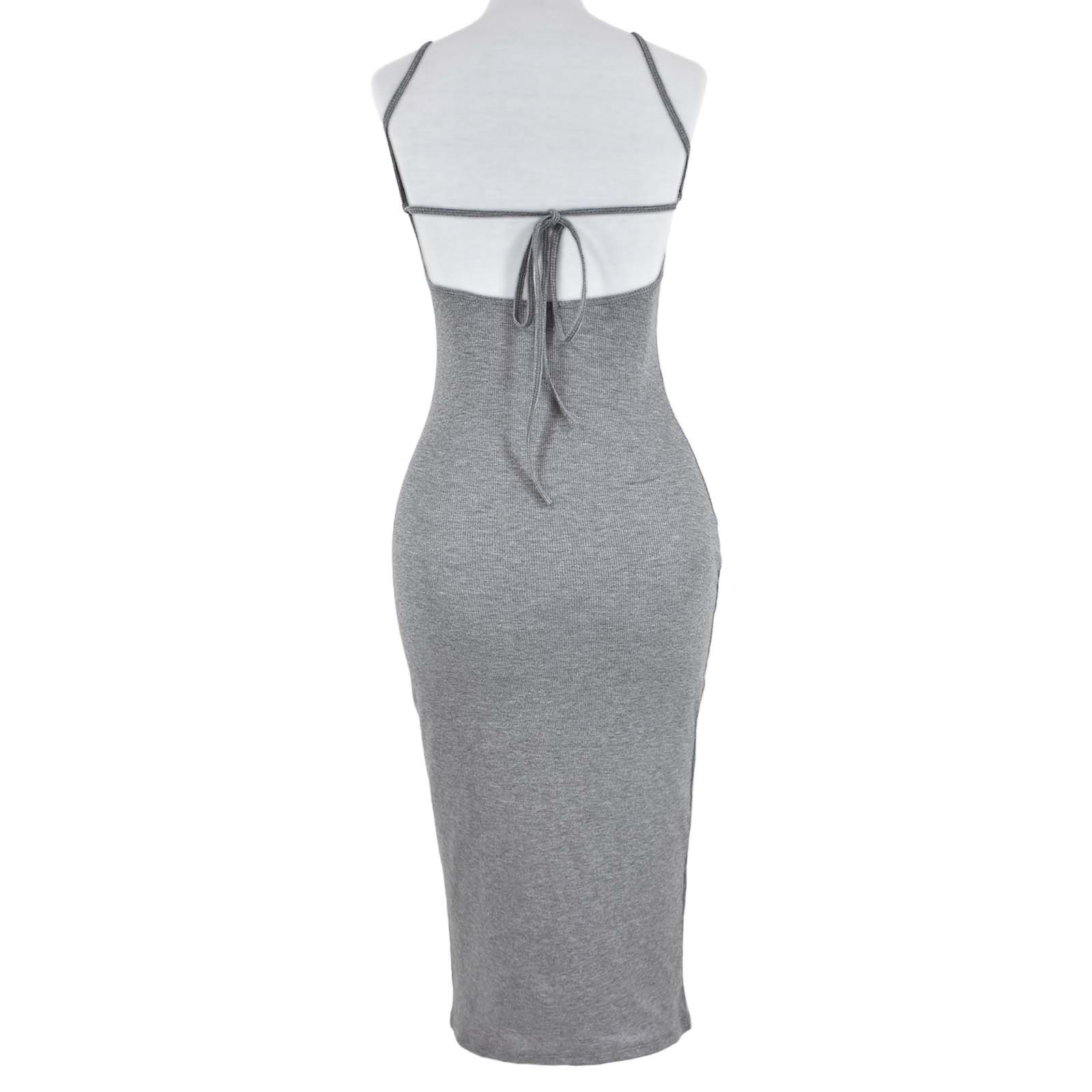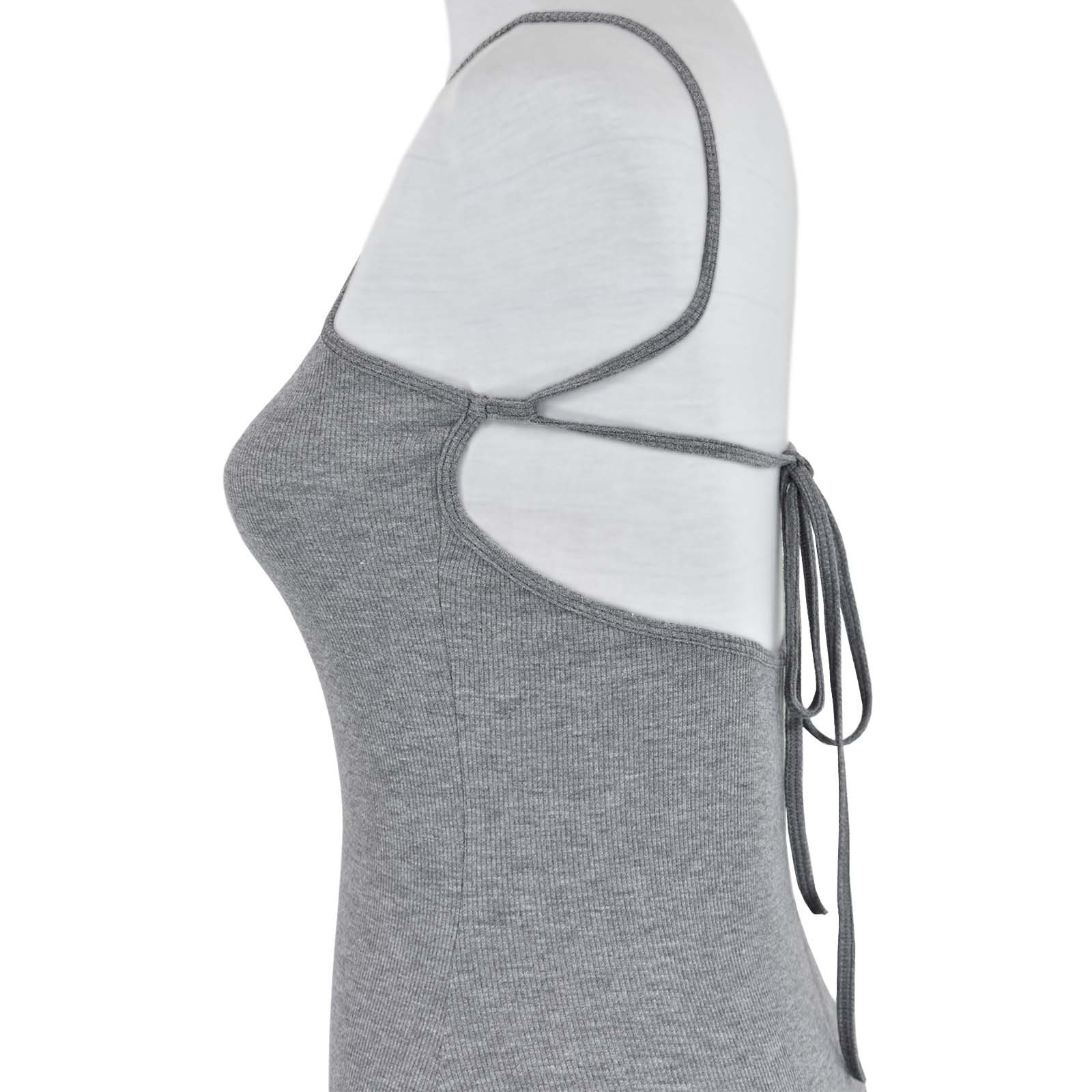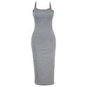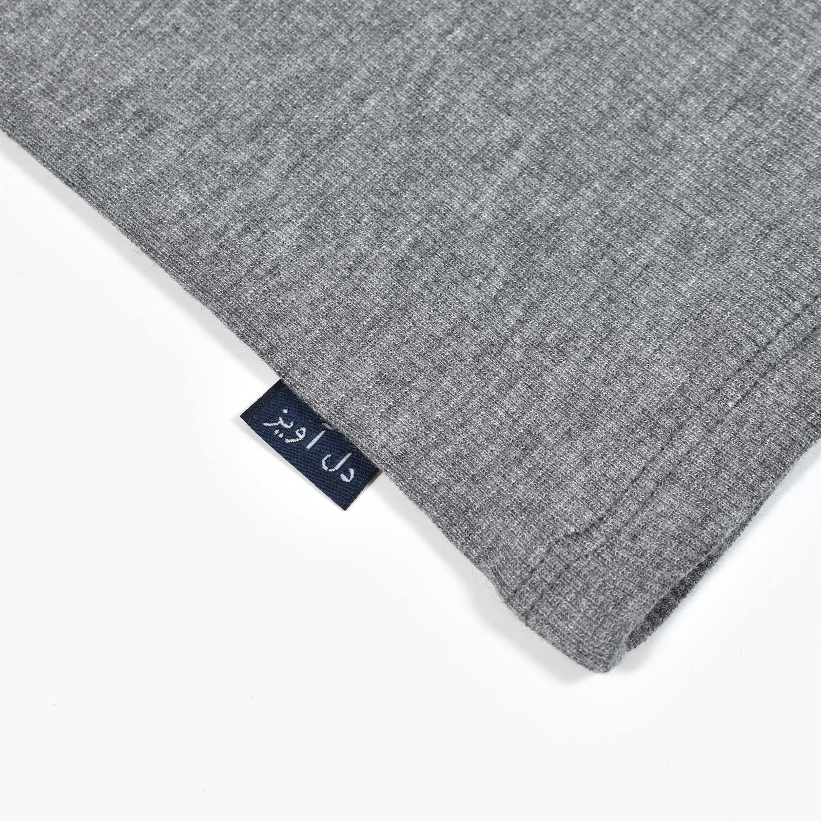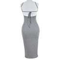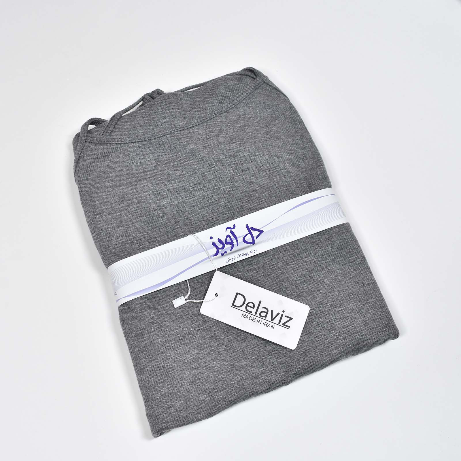 - جزئیاتپیراهن زنانه ماکسی به رنگ خاکستری با طرح پشت باز بندی با جنس ملانژ کشی