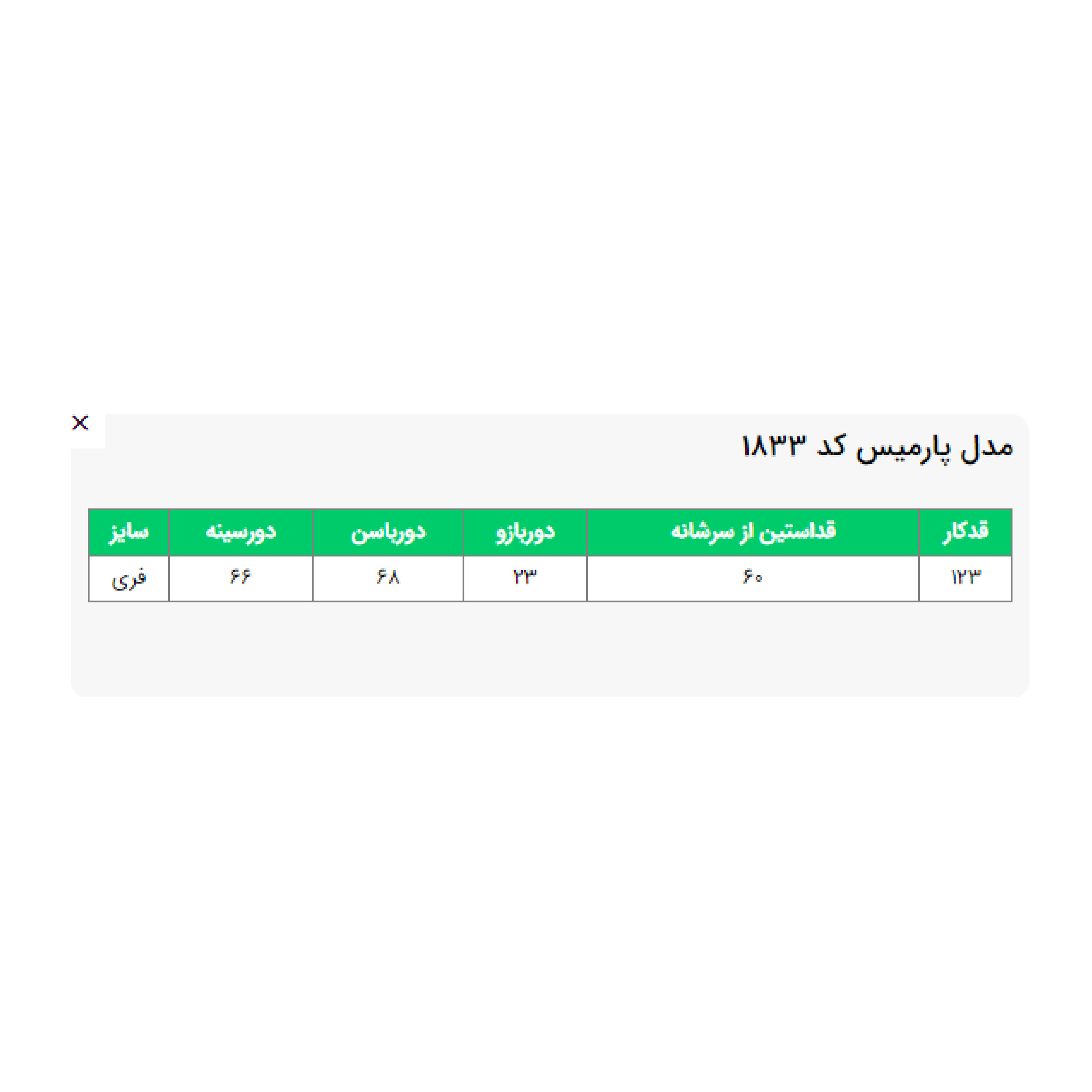 جدول سایز: