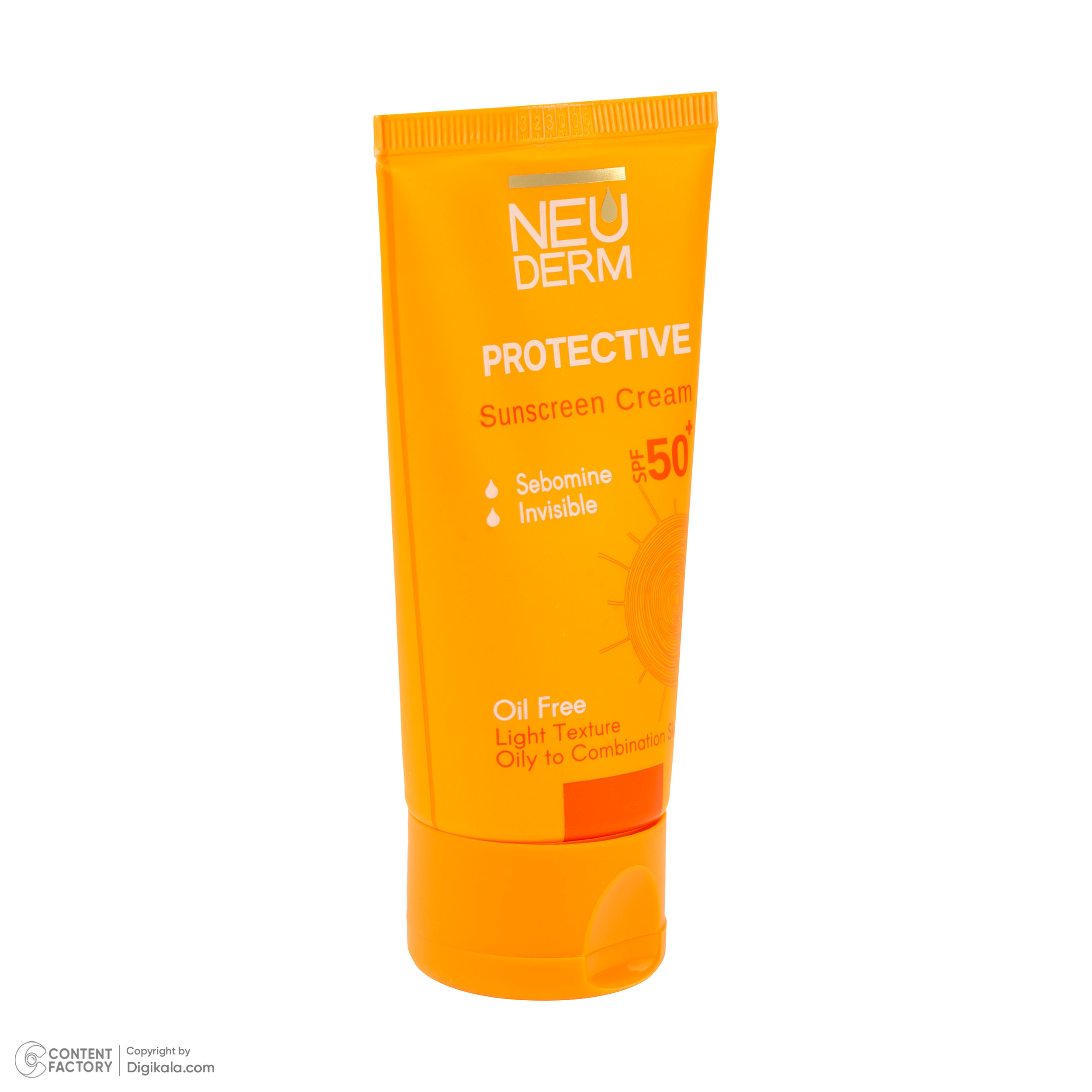 کرم ضد آفتاب بدون رنگ نئودرم SPF 50 مدل PROTECTIVE مناسب پوستهای چرب و مختلط حجم 50 میلیلیتر