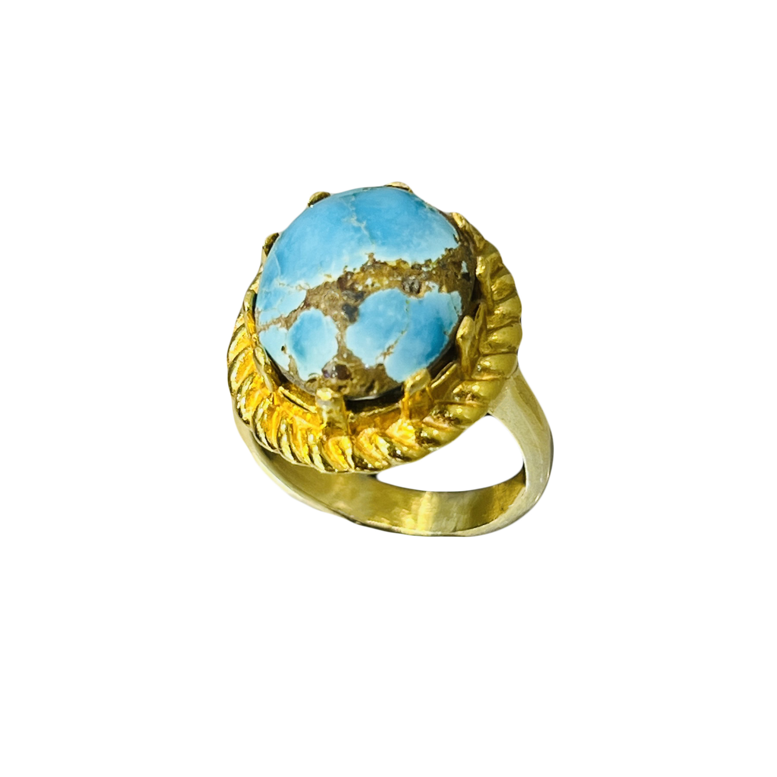 - سایر توضیحاتانگشتر ارائه شده مصنوع از نقره با عیار 925 می باشد این اثر کار شده با روکش طلای 24 می باشد طراحی و ساخت این اثر تماما دستساز می باشد و مزین به فیروزه نیشابوری اصلی طبیعی می باشد