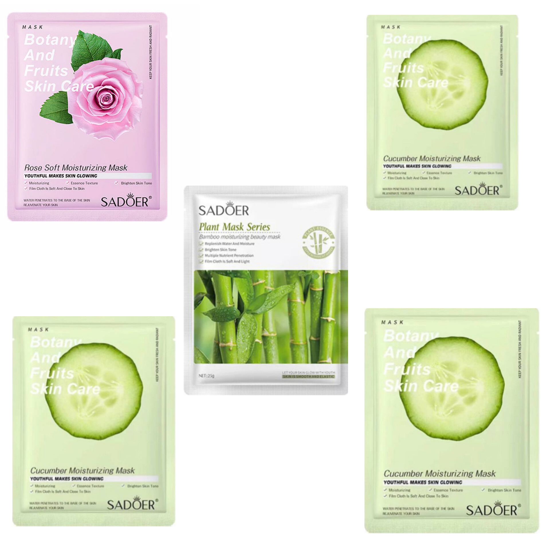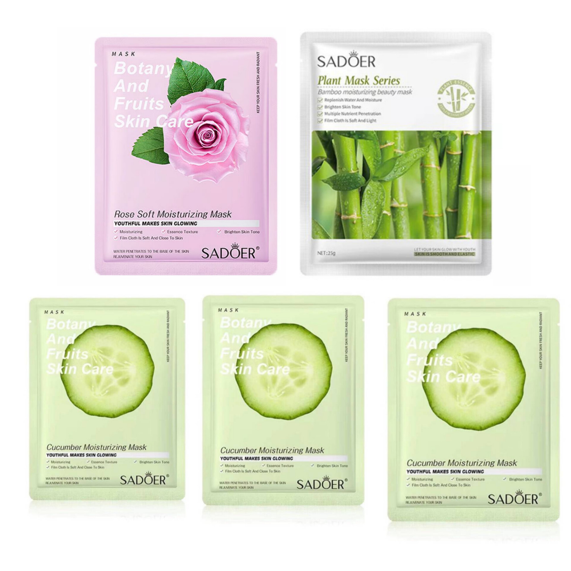 ماسک صورت سادور مدل خیار و بامبو حجم 25 میلی لیتر بسته 5 عددی