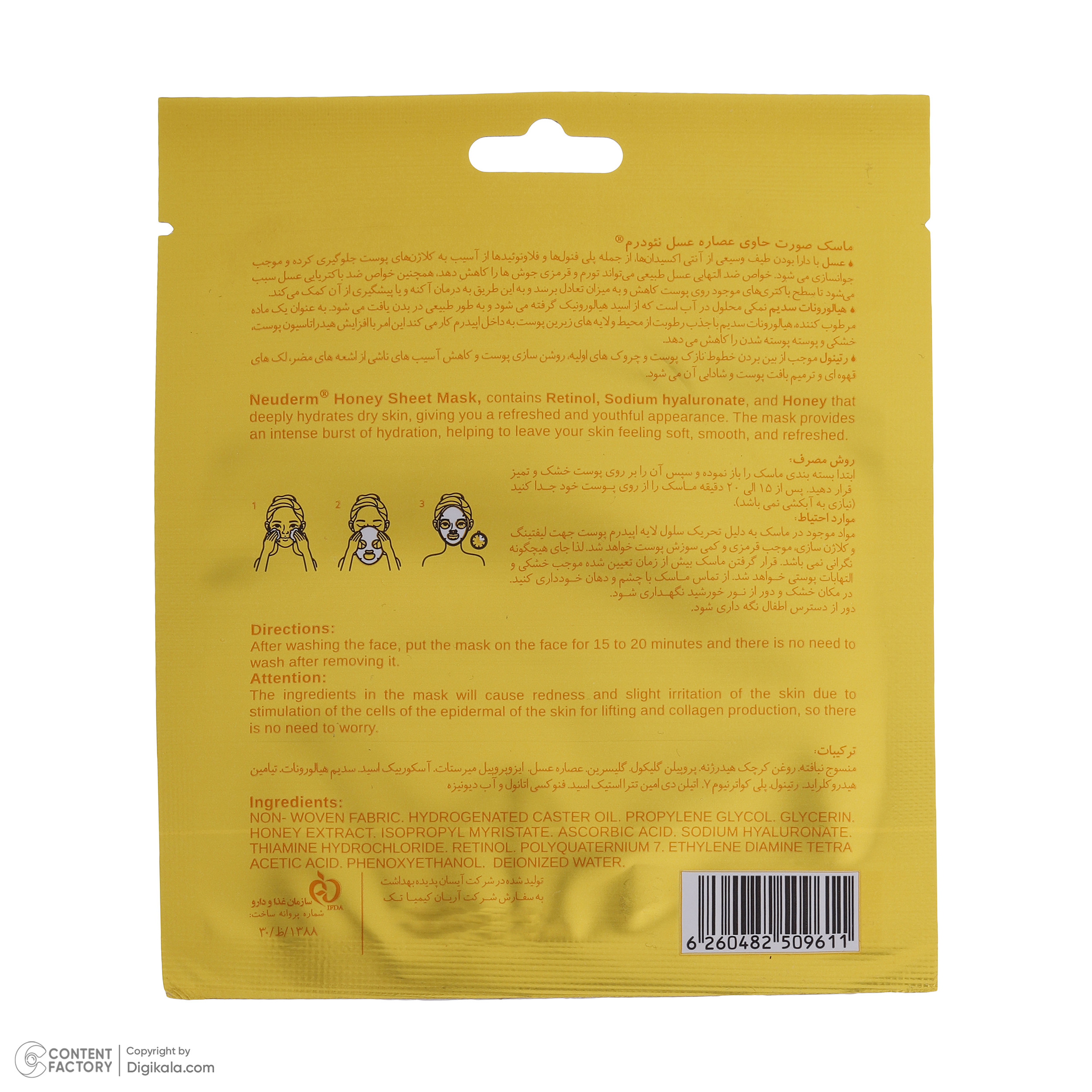 ماسک صورت نئودرم مدل Honey حجم 25 میلی لیتر