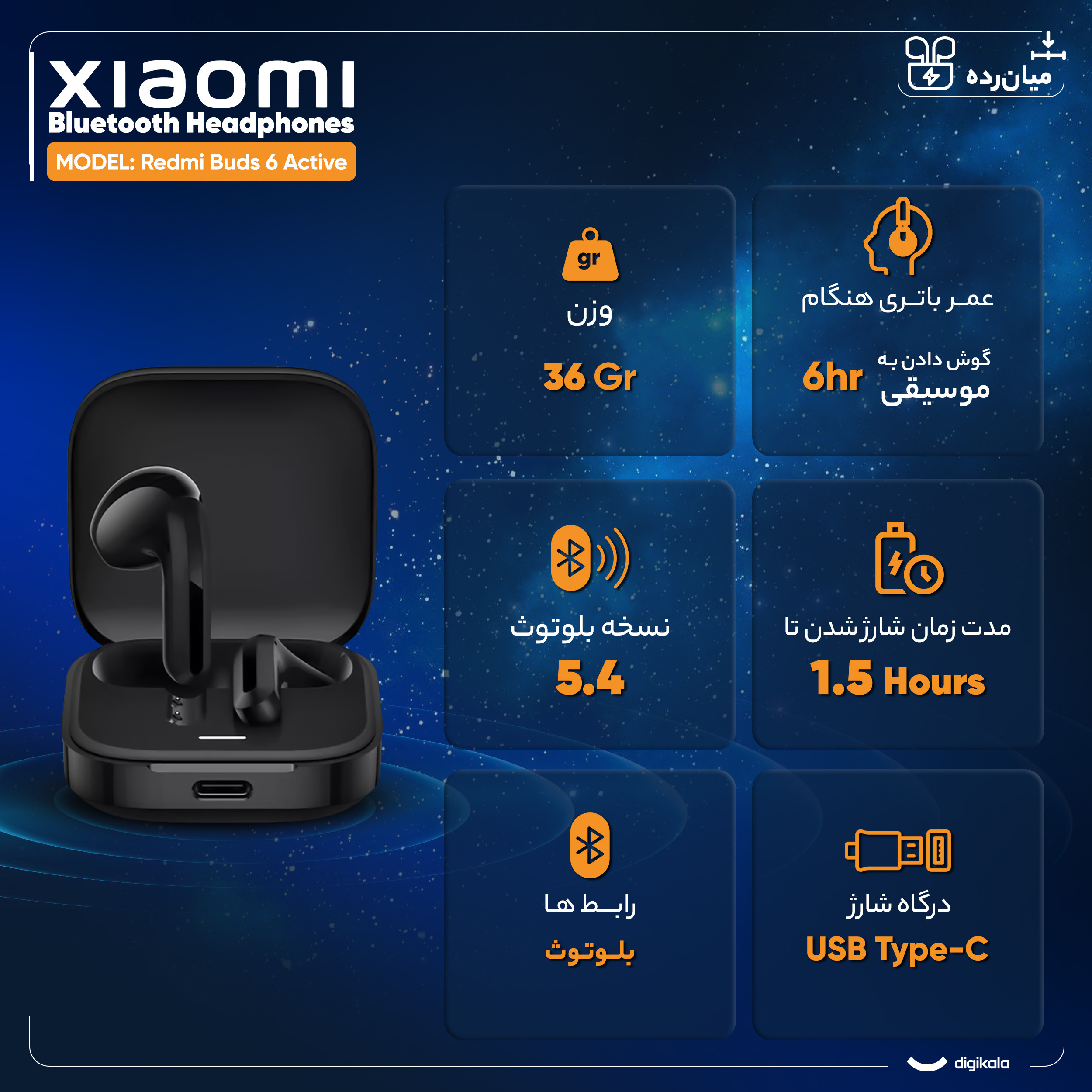- زمان موردنیاز برای شارژ هدفون1.5 ساعت