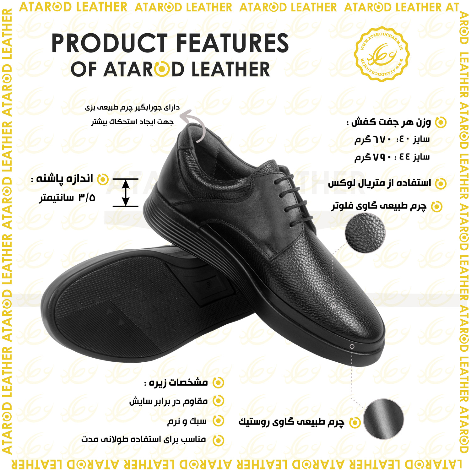 پاشنه تا پنجه تمام چرم طبیعی برند چرم عطارد