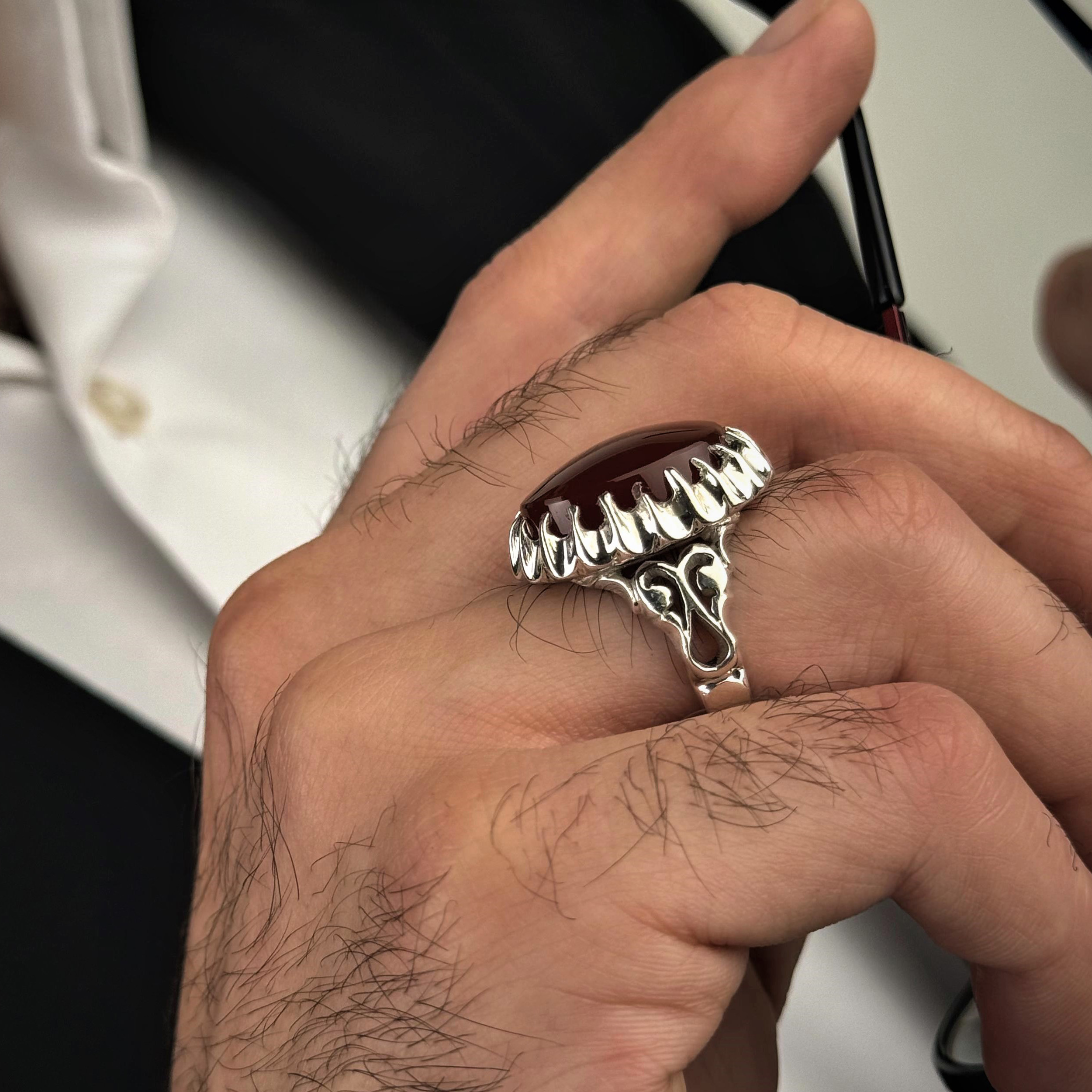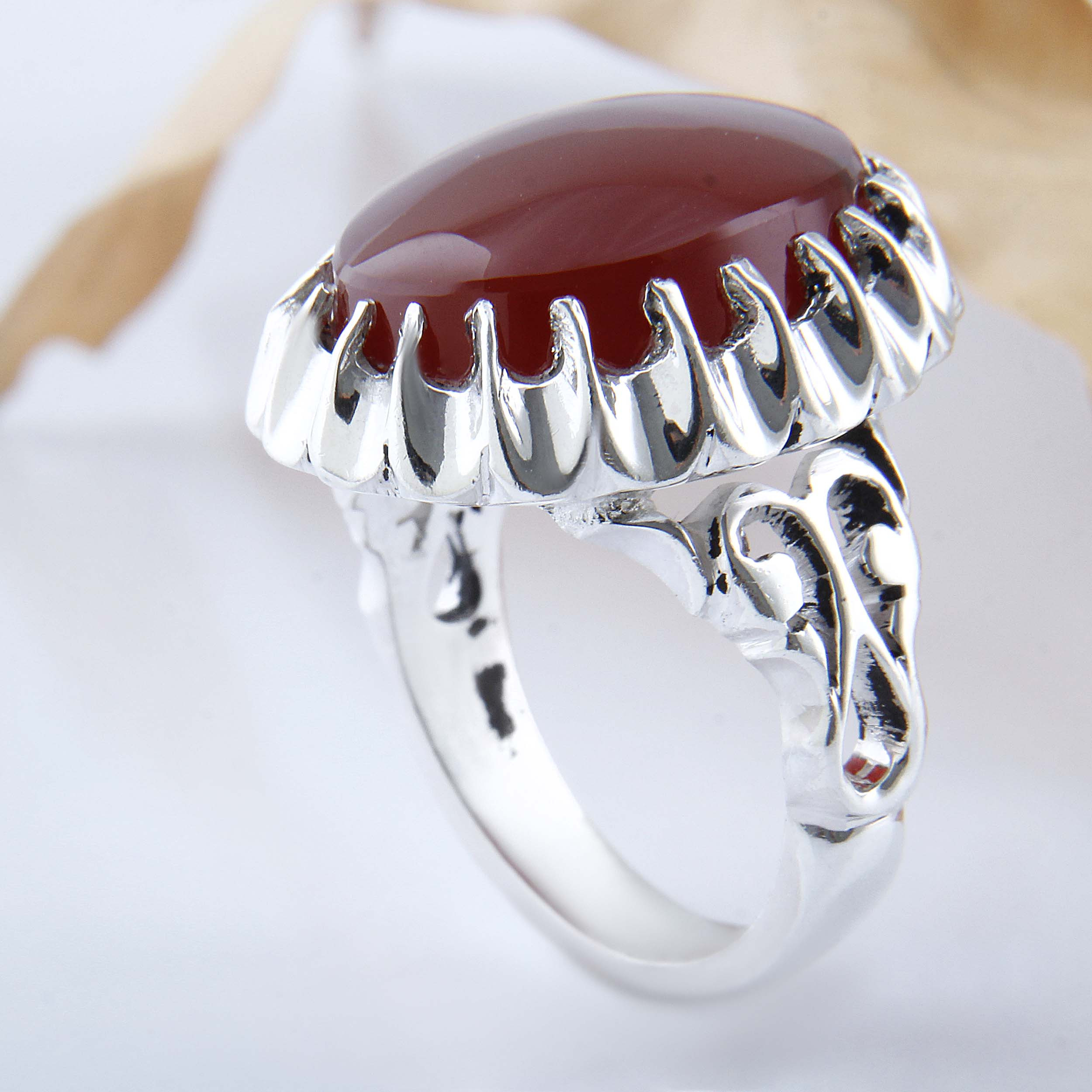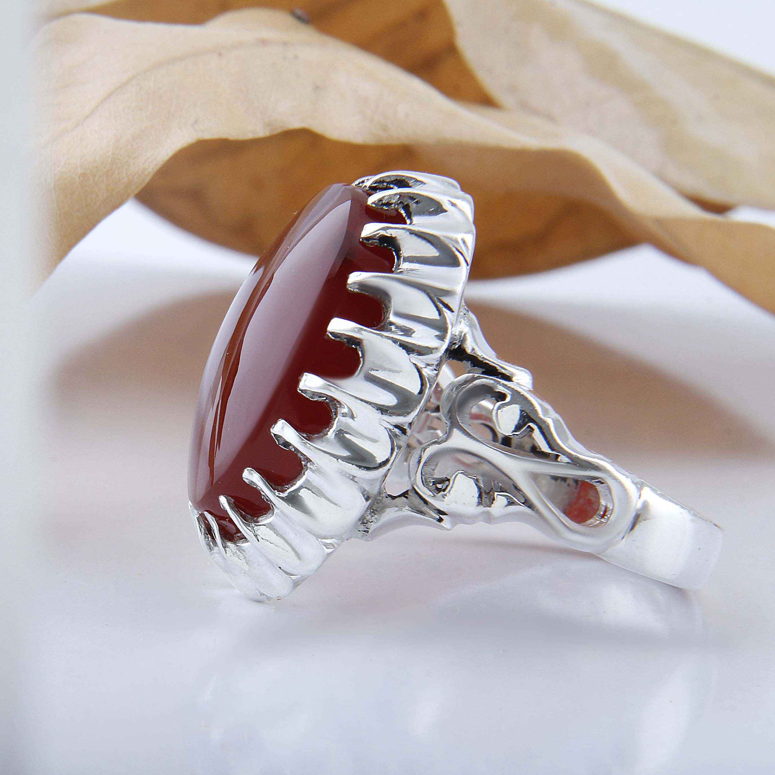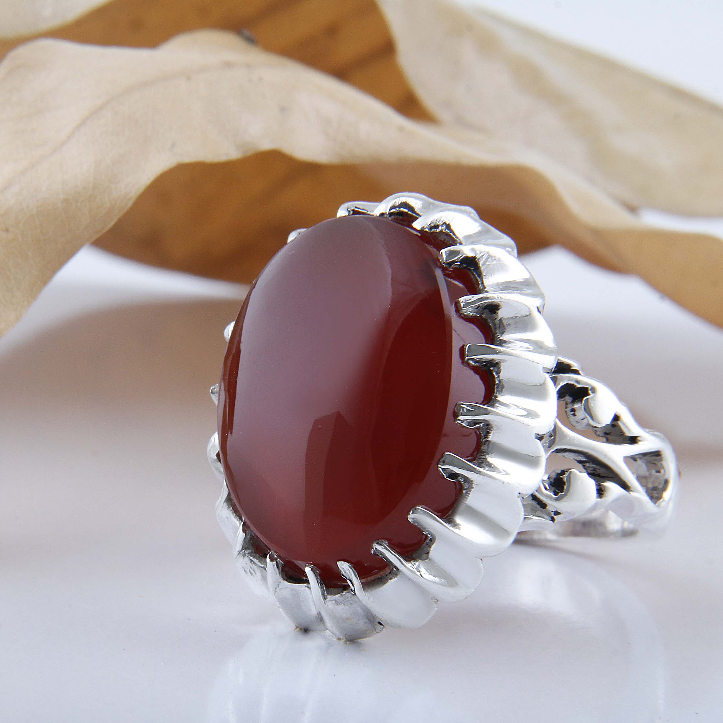 انگشتر نقره مردانه مدل رکاب دست ساز سنگ عقیق سرخ یمانی کلکسیونی کد AM_04343