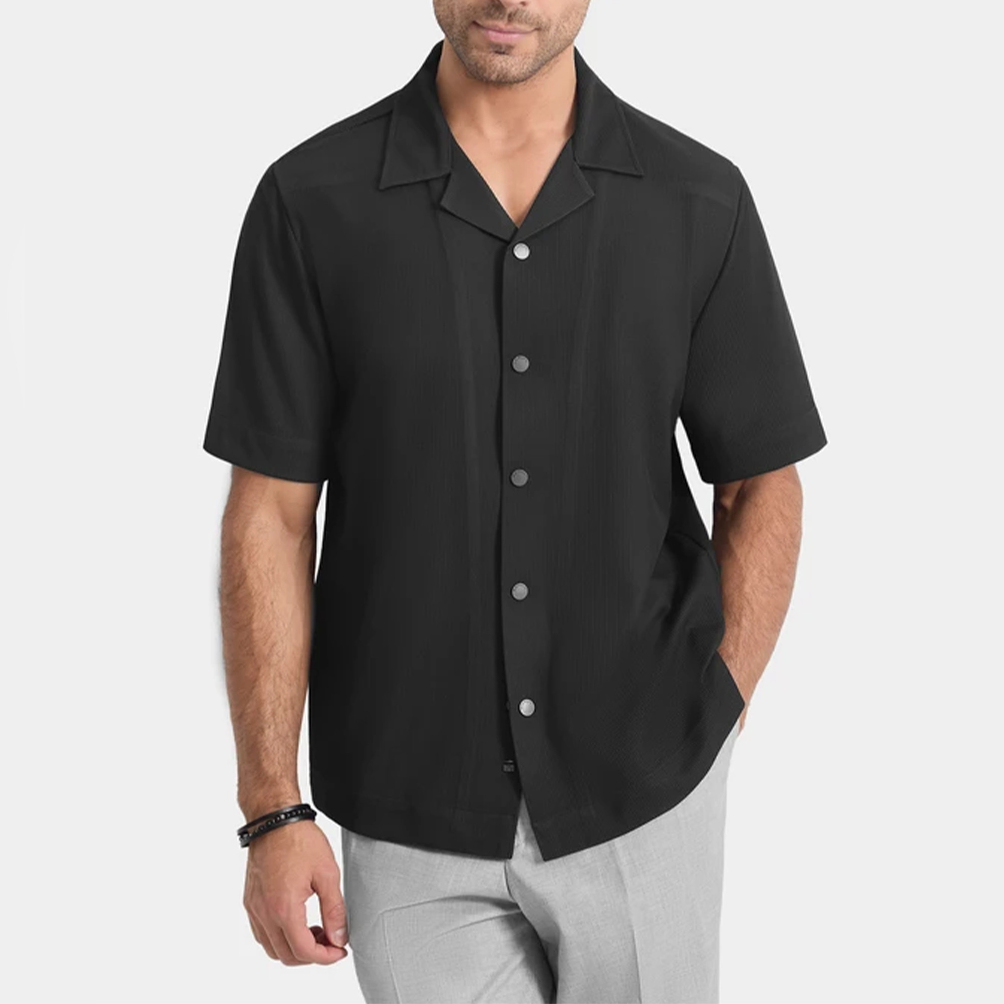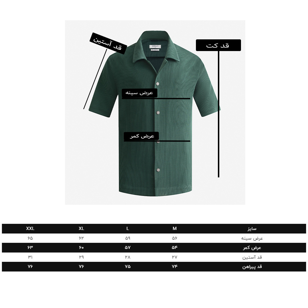 - جزئیاتپیراهن مردانه آستین کوتاه-استایل Comfort-Fit-دارای دکمه های پرسی -یقه انگلیسی-دارای چاک در بغل-ثبات رنگ در شستشو