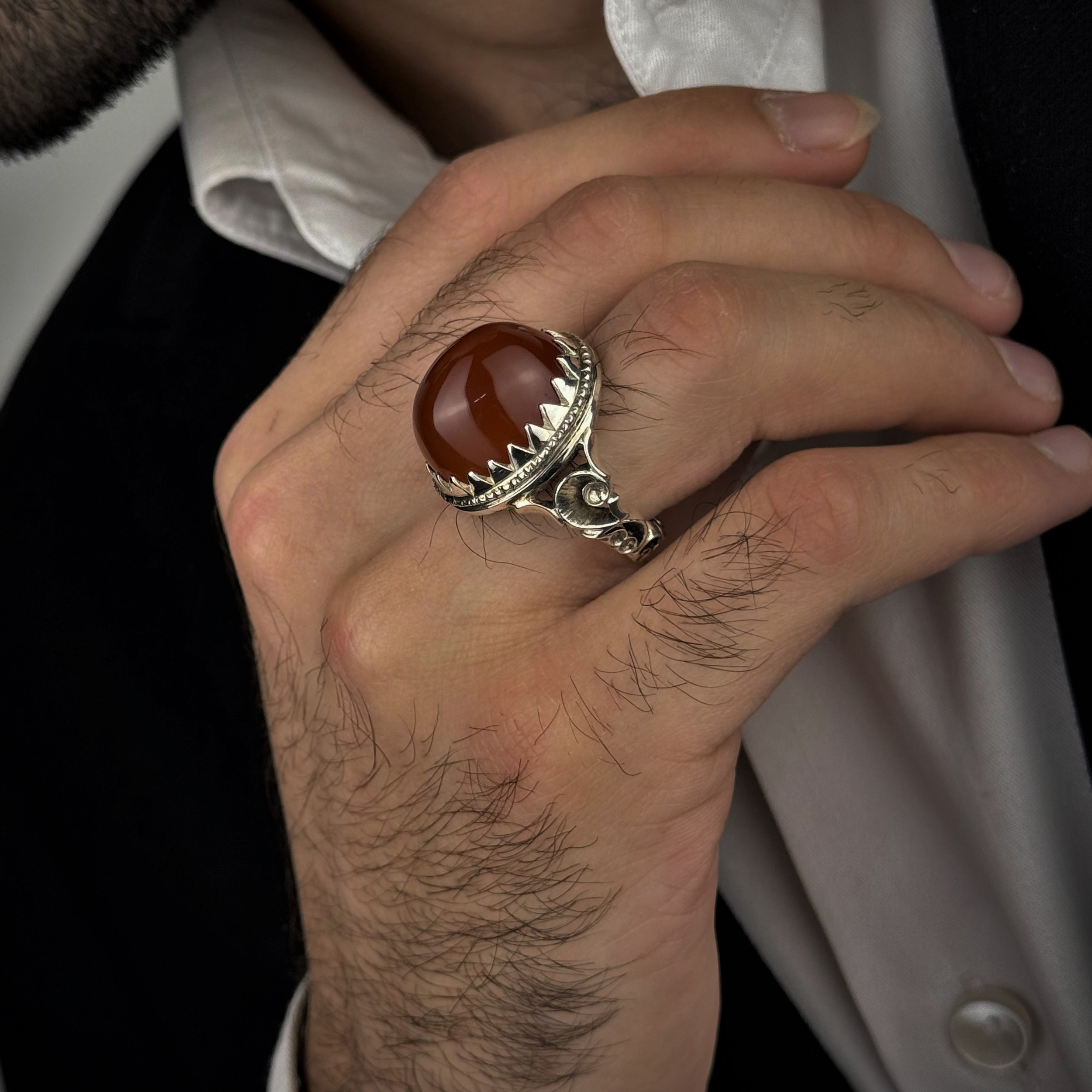 - نوع انگشتر نقره مردانههمراه با سنگ و نگینطرحدار