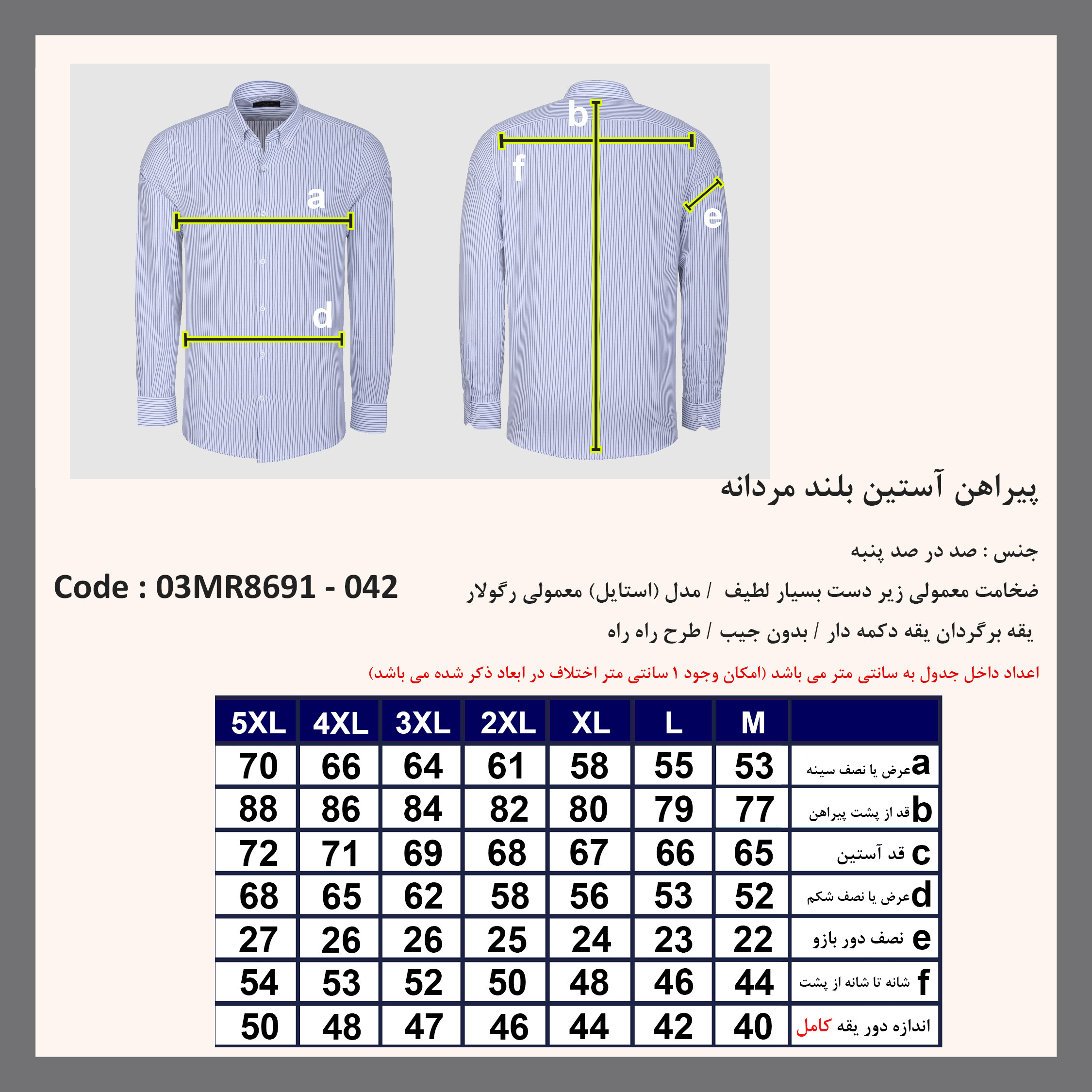 - جزئیاتجنس : صد در صد پنبه / ضخامت معمولی (متوسط) - زیر دست لطیف / مدل معمولی (رگولار) / راه راه سفید طوسی