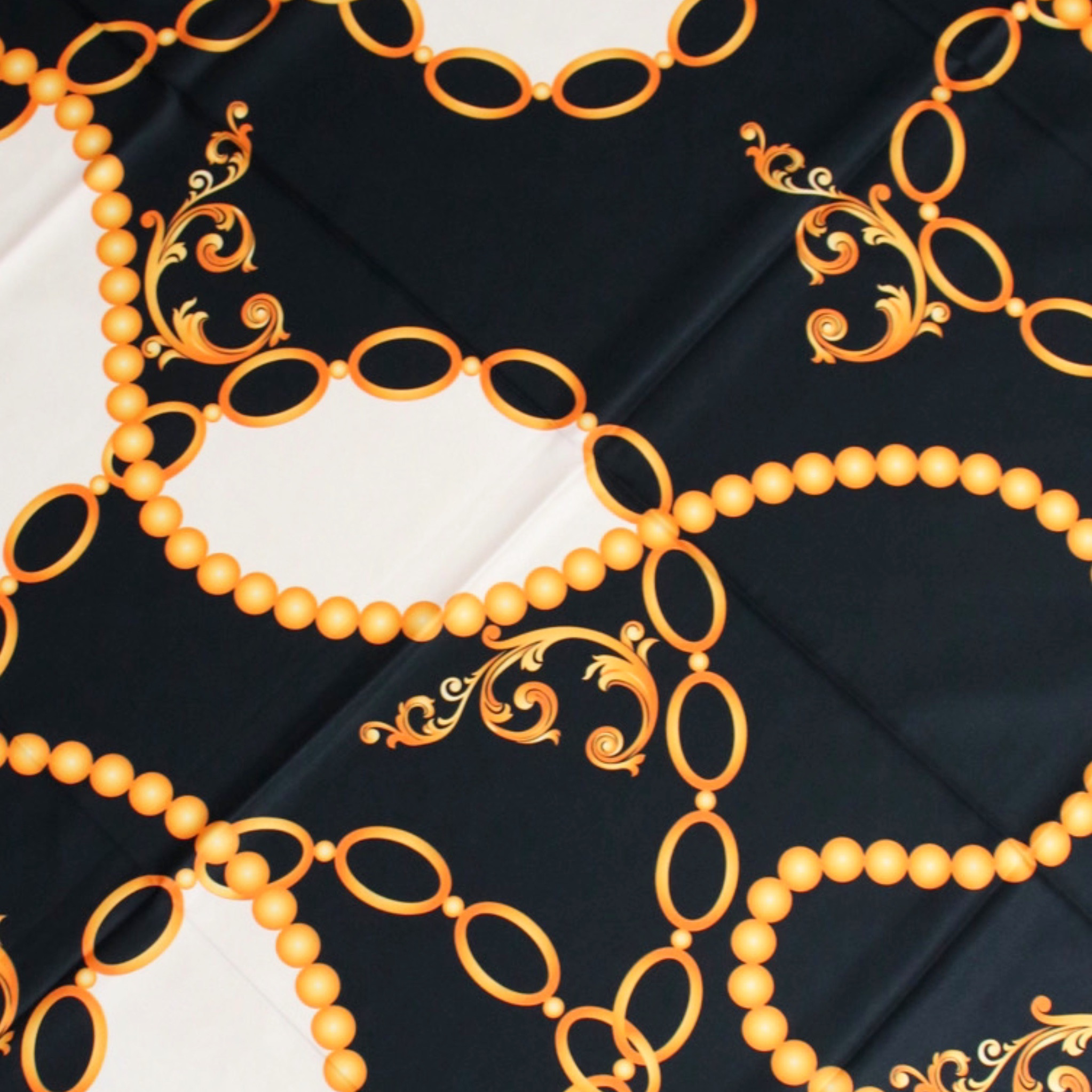 روسری ابریشم دور دست دوز - قواره 140- تهیه شده از مواد اعلا و ضد حساسیت - بسیار لطیف و سبک و باکیفیت - مناسب چهار فصل - رویه شاین و بسیار زیبا - لاکچری و بسیار شکیل روی سر - کیفیت چاپ عالی - بدون تغییر رنگ در شستشو -بالاتر از کیفیتی که انتظارش را دارید