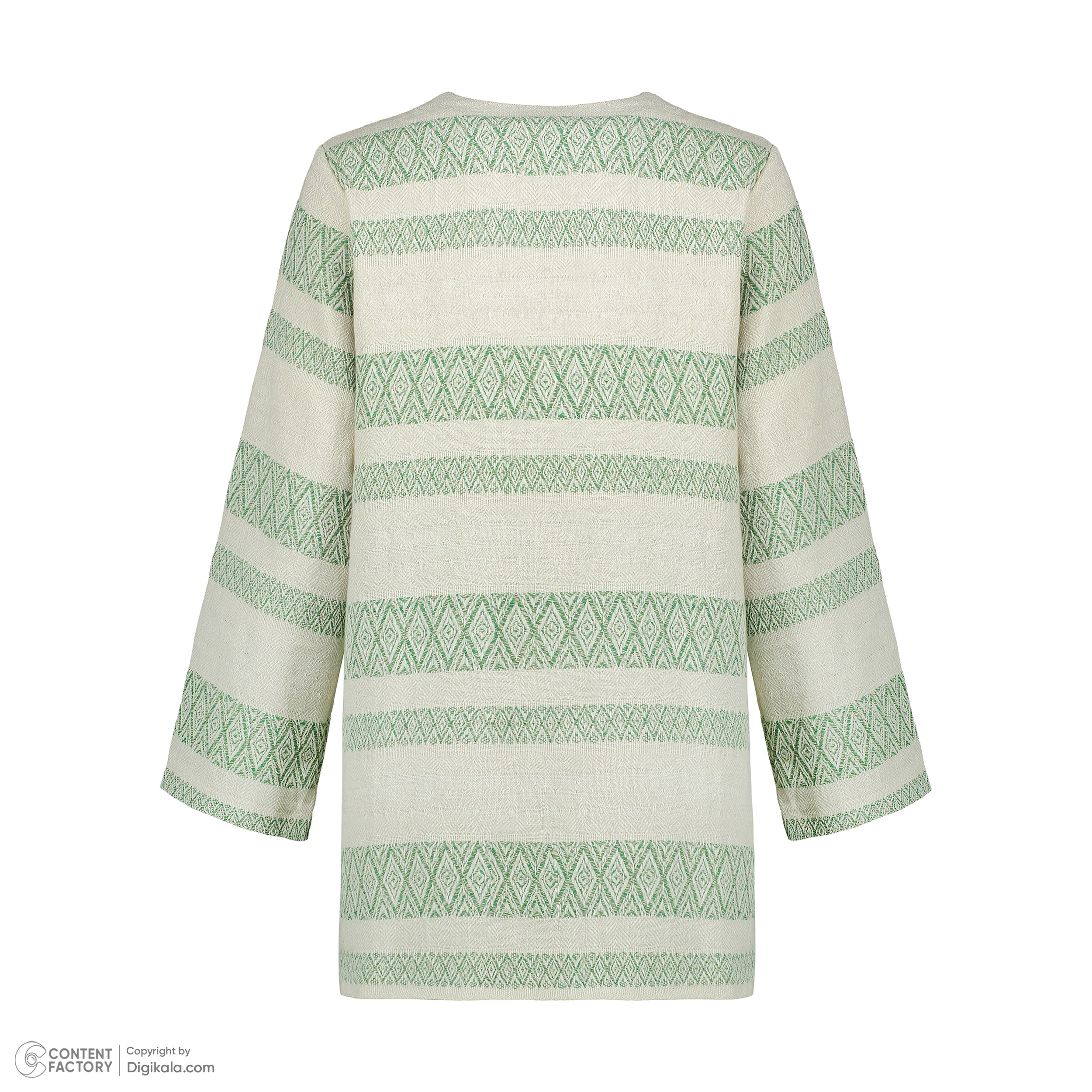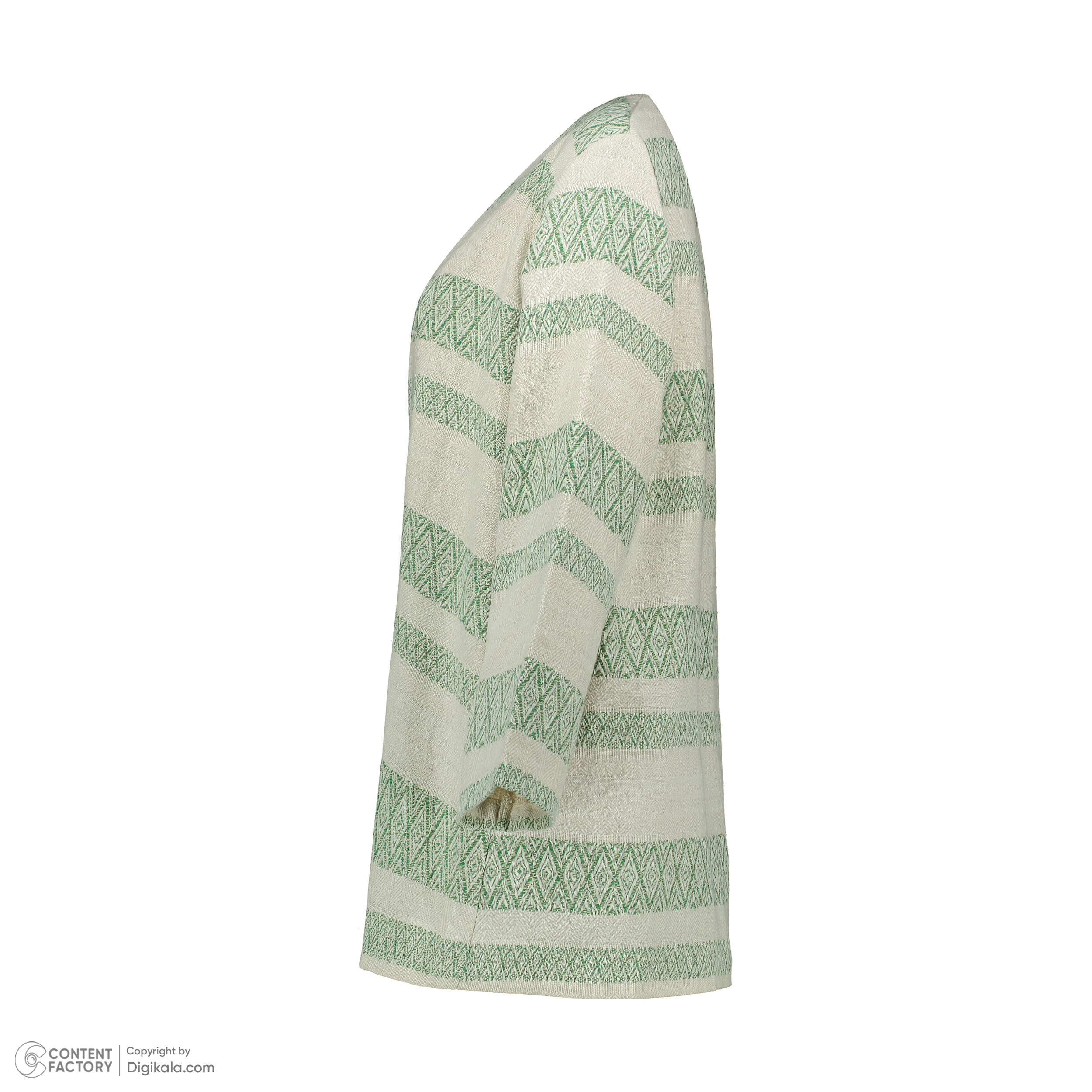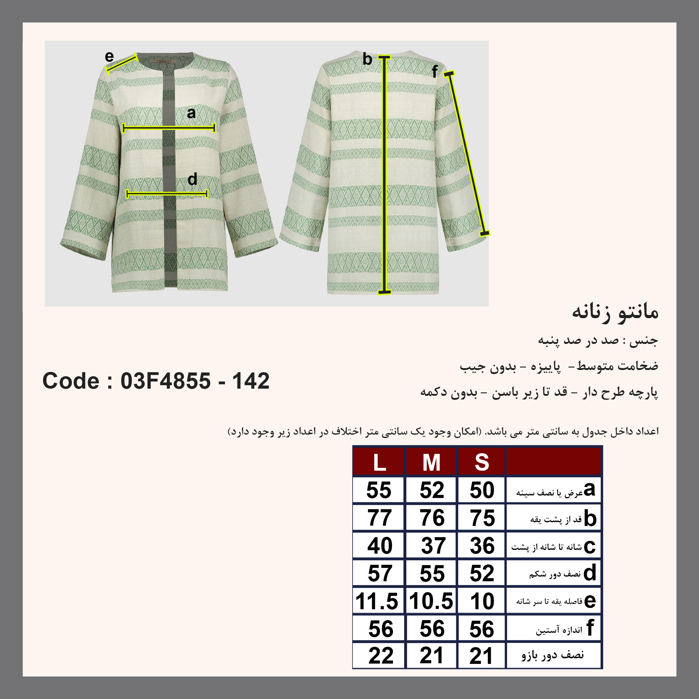 - جزئیاتصد در صد پنبه پارچه طرح دار / بدون جیب بدون دکمه / قد تا زیر باسن / یقه گرد