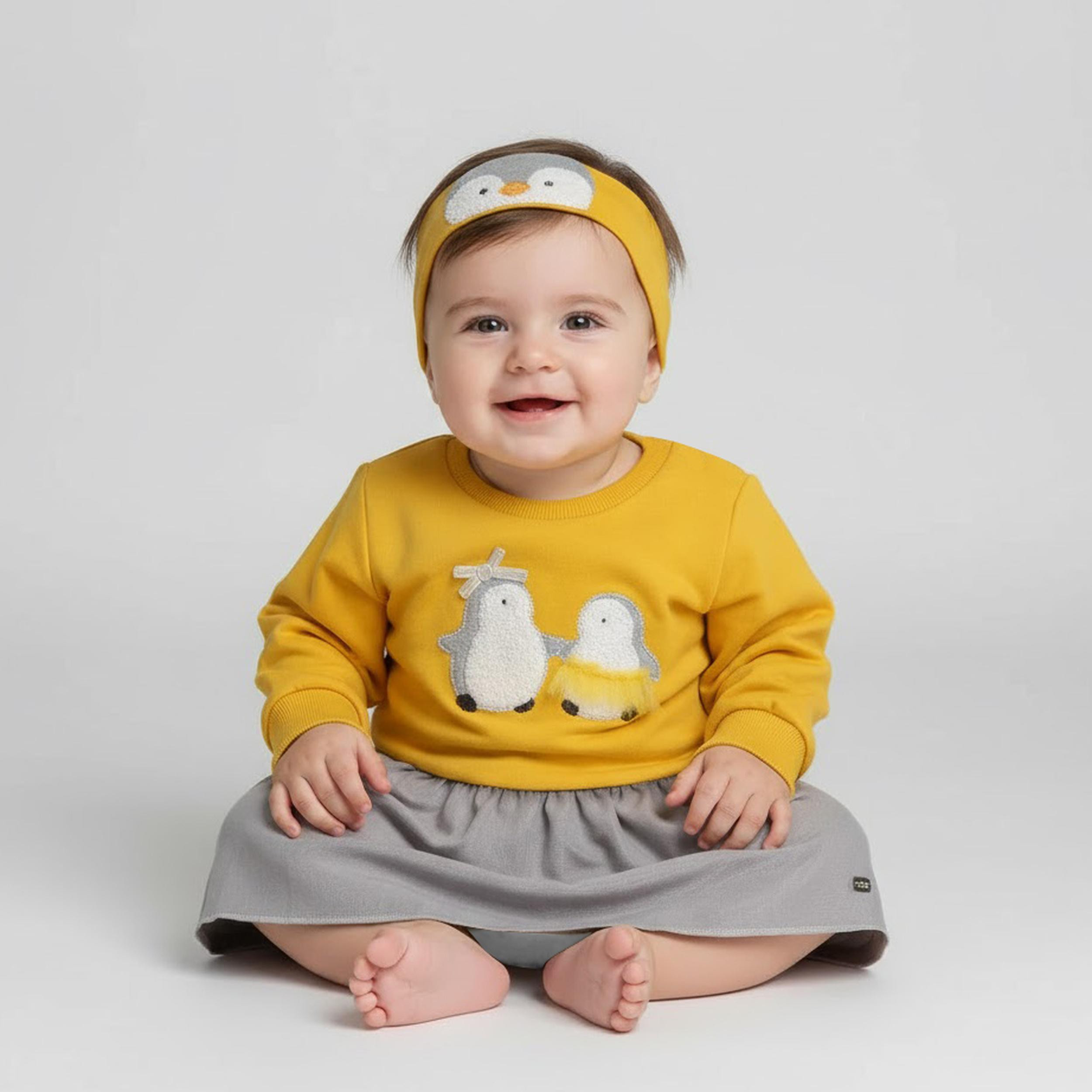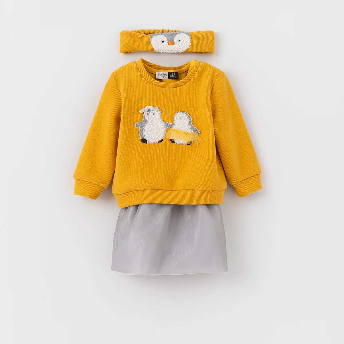 - لباس سه تکه شامل تل ، سویشرت و سارافون